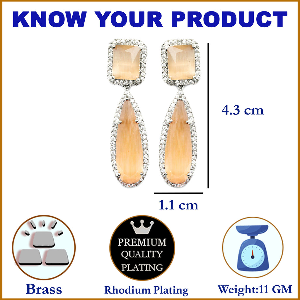 Rhodium-Plated Orange & White American Diamond studded Teardrop Shaped Drop Earrings