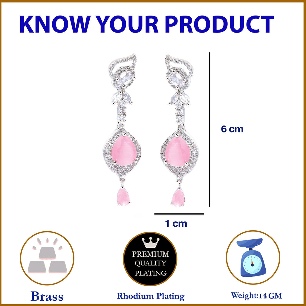 Rhodium-Plated Pink & White American Diamond studded Handcrafted Teardrop Drop Earrings