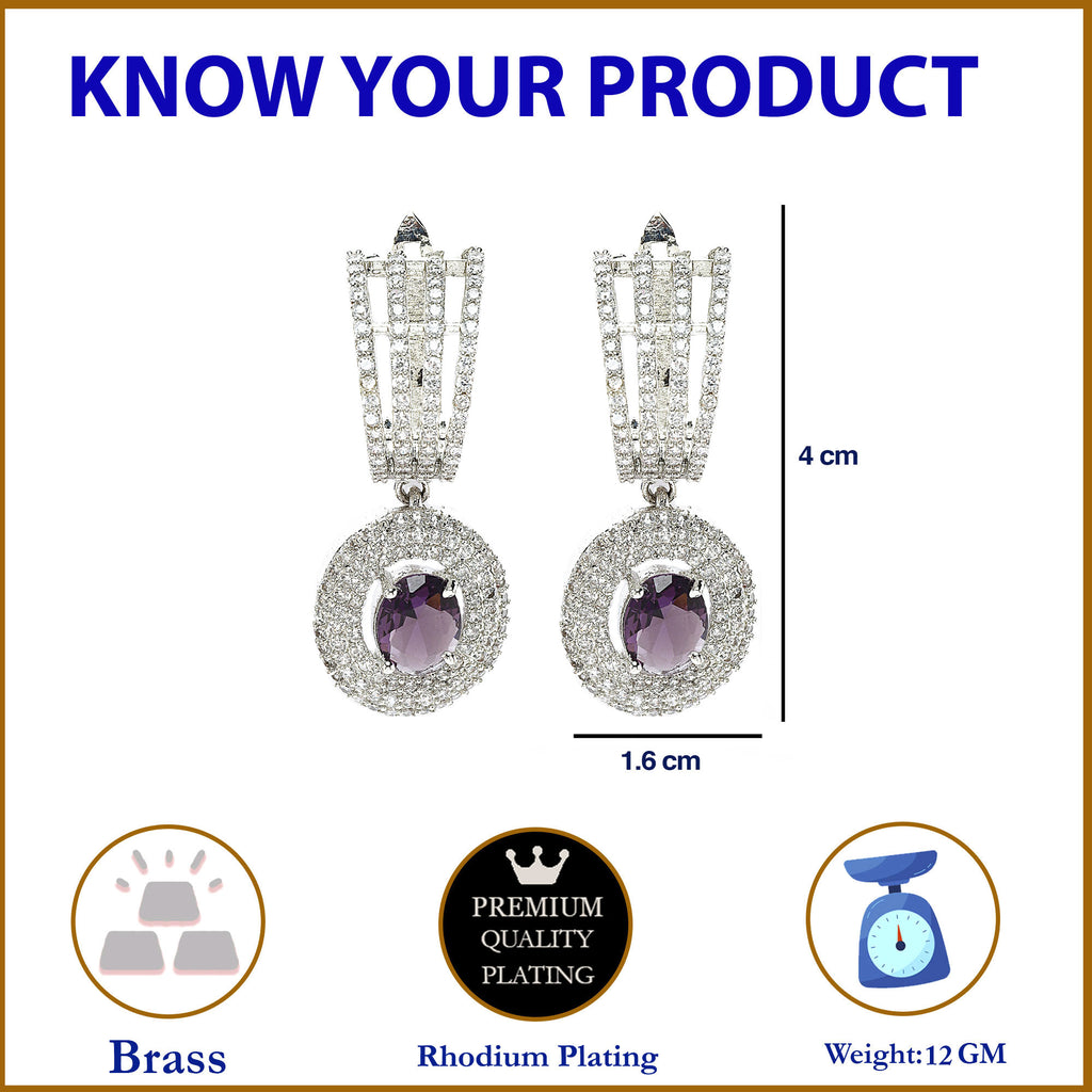 Rhodium-Plated Purple American Diamond studded Handcrafted Oval Shaped Drop Earrings