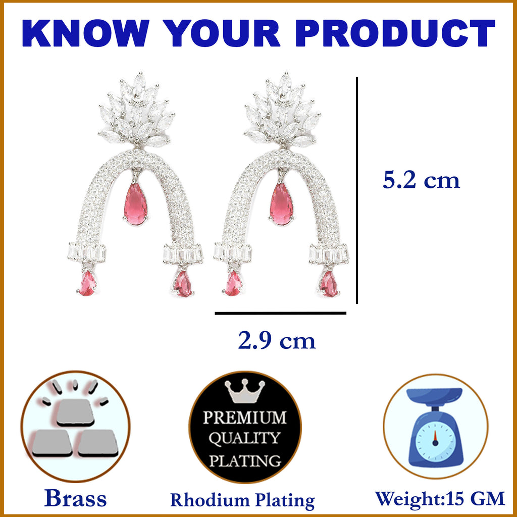 Rhodium-Plated with Silver-Toned Red & White Quirky Handcrafted Drop Earrings, has American Diamond studded secured with a post and back.