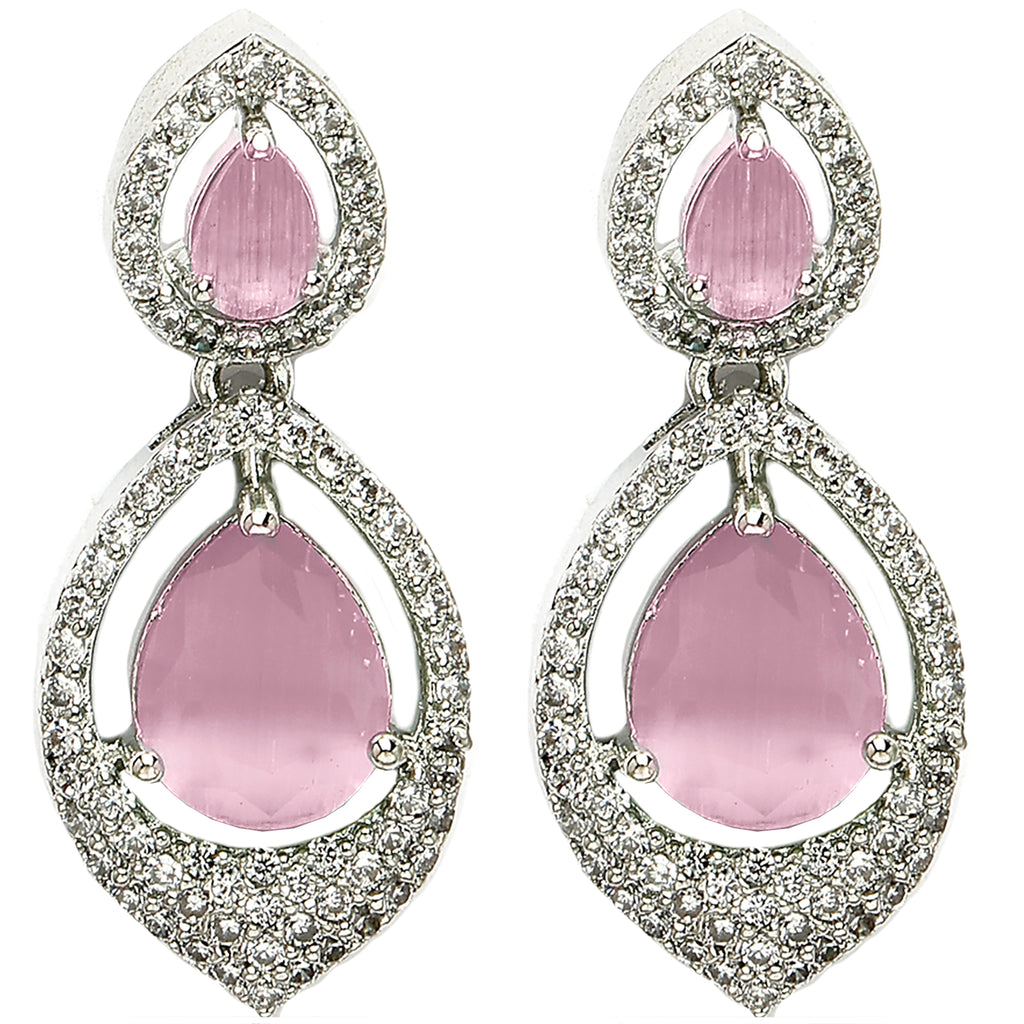 Elegant Design: This rhodium-plated earring showcases a harmonious blend of traditional and contemporary elements.