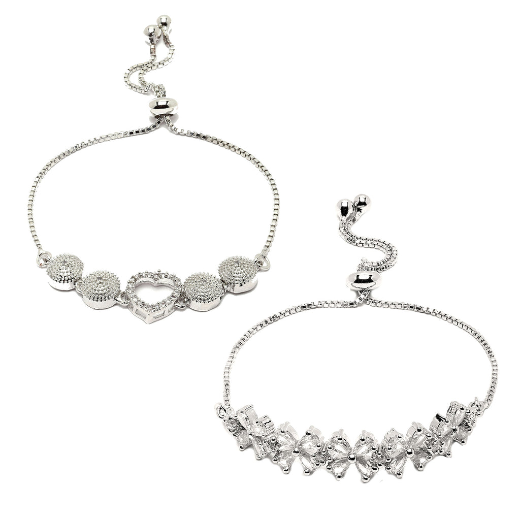 Elegant Design: This adjustable bracelet combo features a sleek & beautiful studded charm design with American diamonds, creating a sophisticated and eye-catching look.