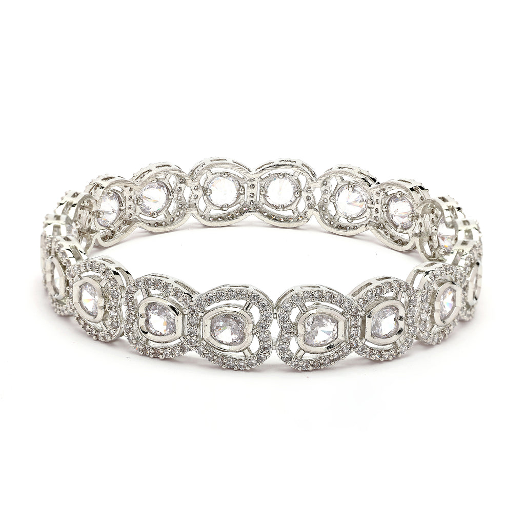Elegant Design :This Rhodium plated American Diamond studded bangles offers a versatile look that complements both traditional and contemporary attire.