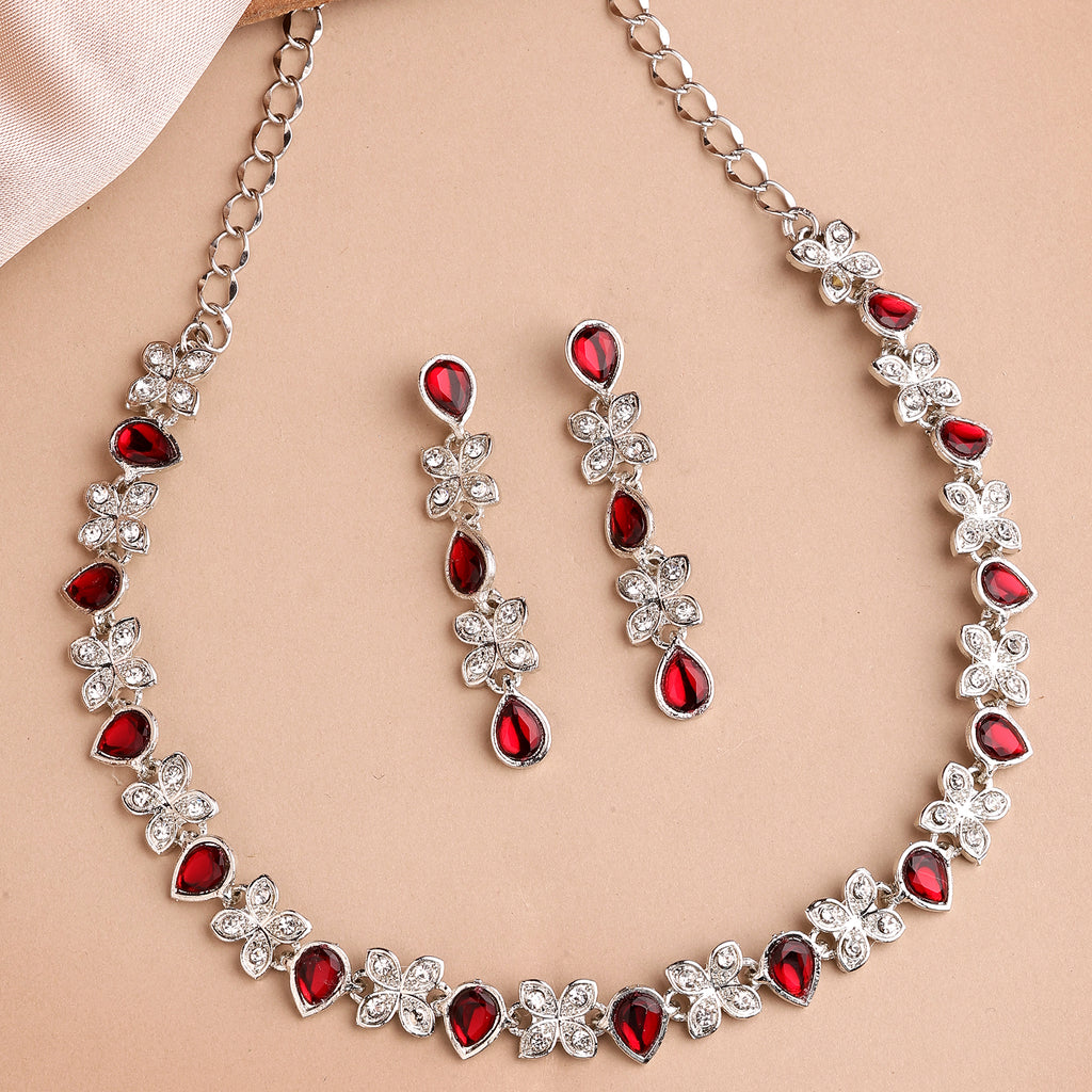 Elegant Design: This rhodium-plated necklace set boasts a sophisticated contemporary design, exuding timeless elegance.