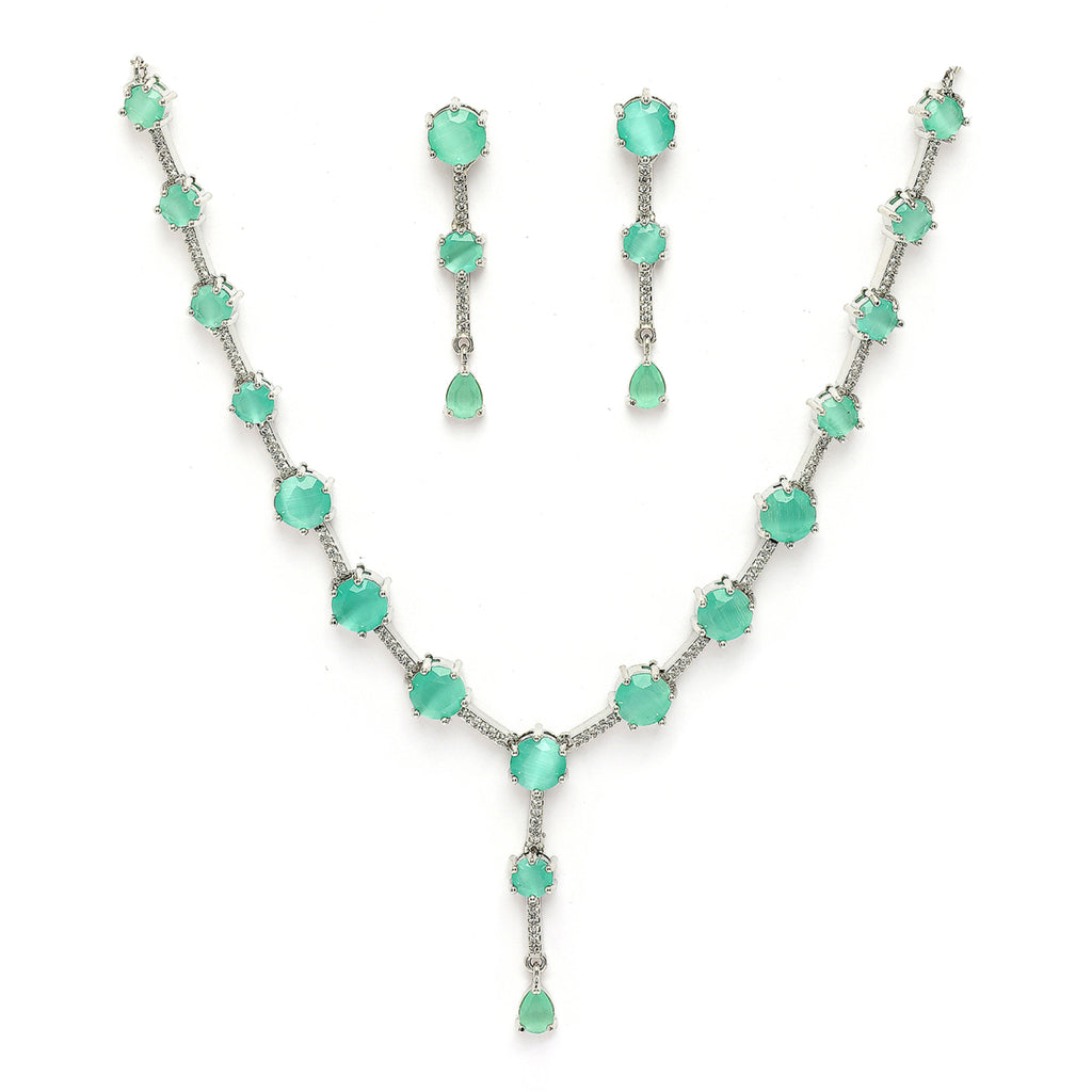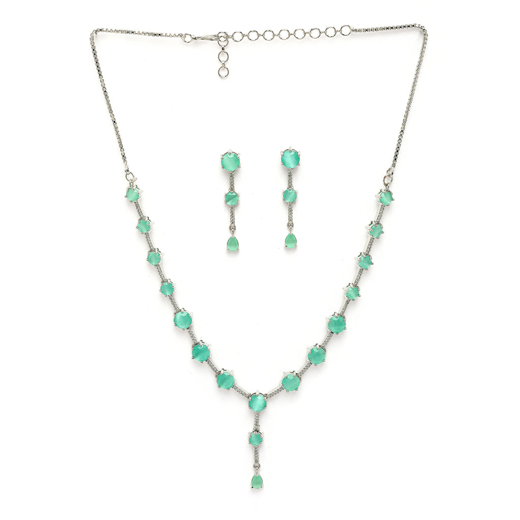 Elegant Design: This rhodium-plated necklace set boasts a sophisticated contemporary design, exuding timeless elegance.