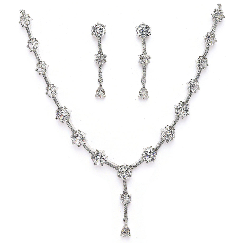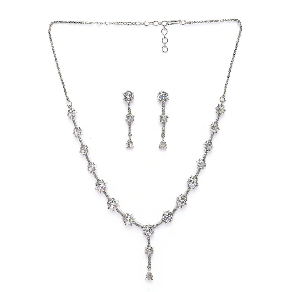 Elegant Design: This rhodium-plated necklace set boasts a sophisticated contemporary design, exuding timeless elegance.