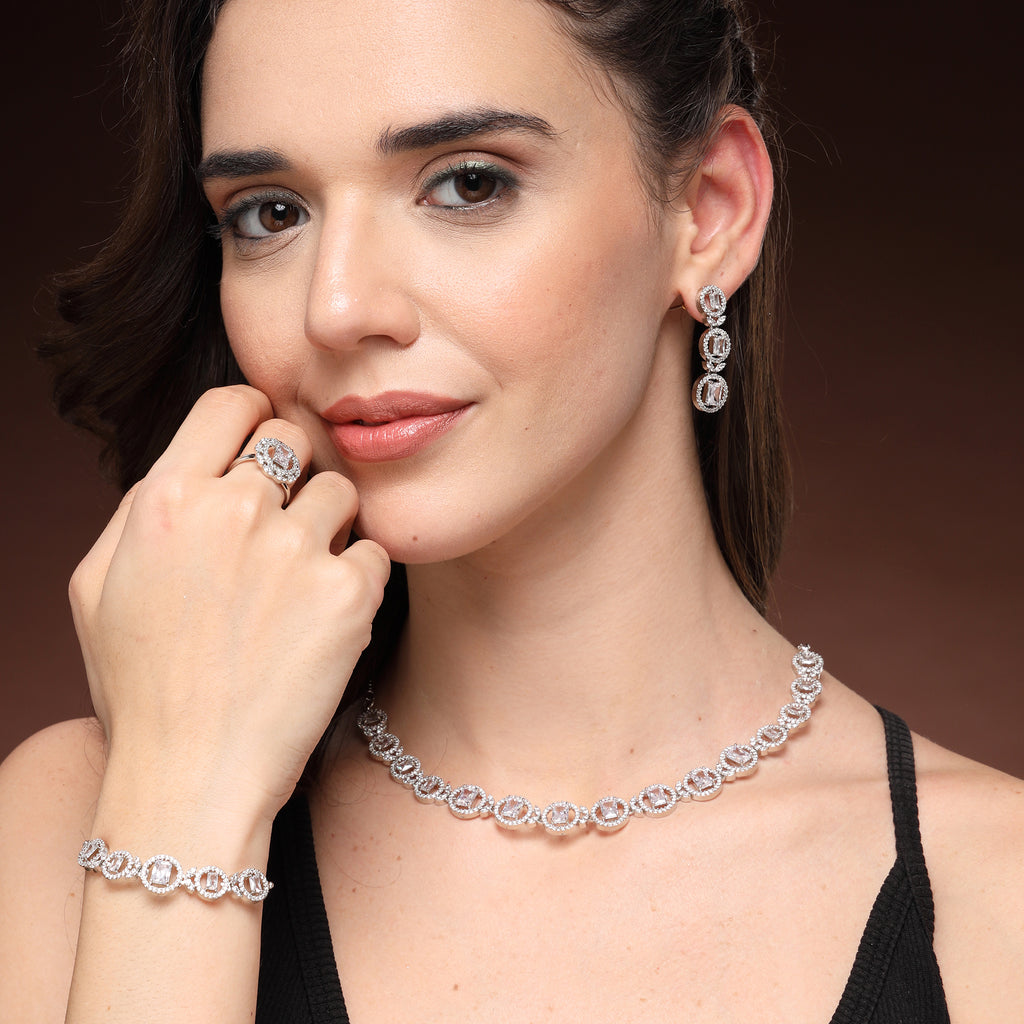 Durable and Polished Finish: The high-quality rhodium plating ensures a polished, long-lasting finish, keeping the set looking stunning for years.
