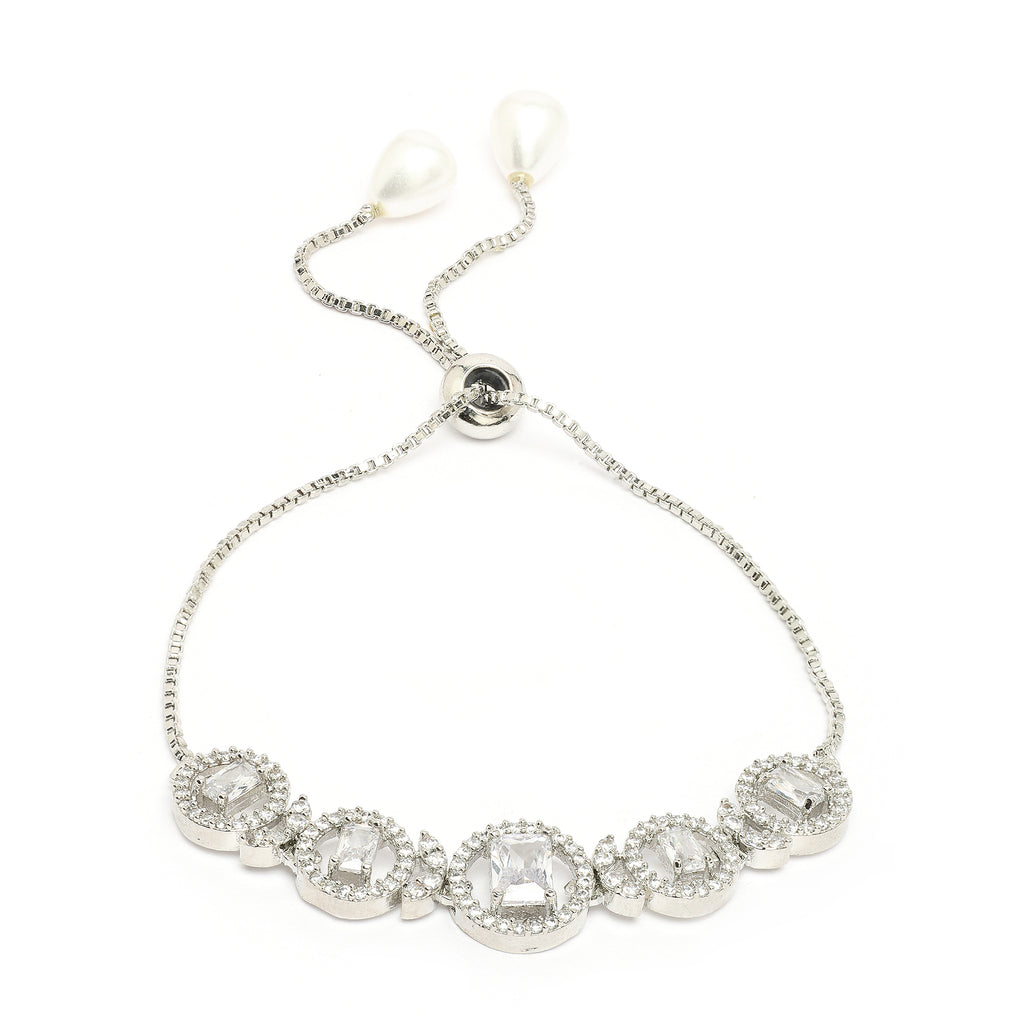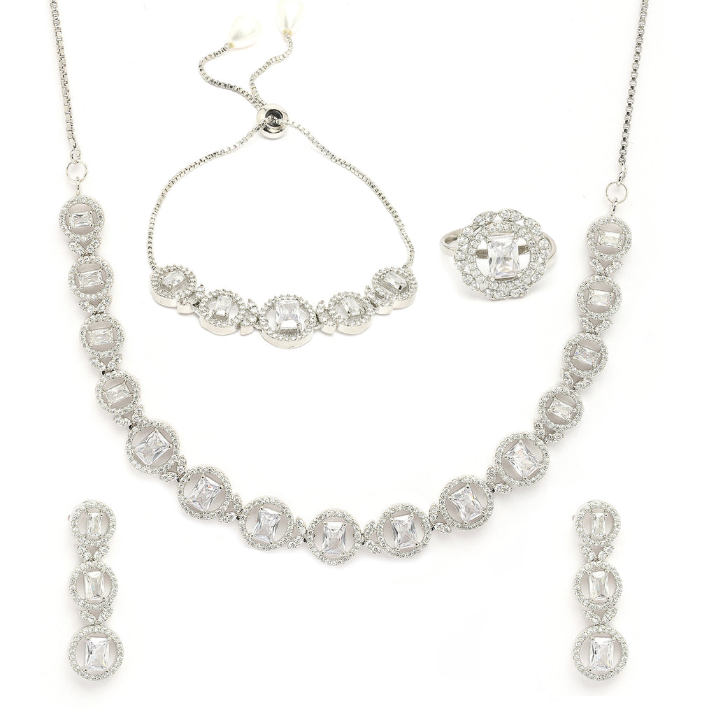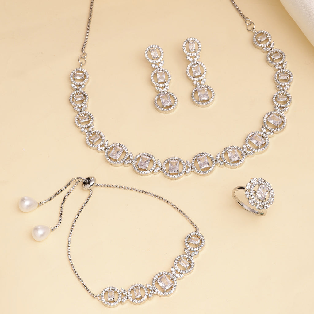 Elegant Design: This rhodium plated necklace set features a delicate circular design with soft white stones, adding a touch of sophistication and femininity to your look.