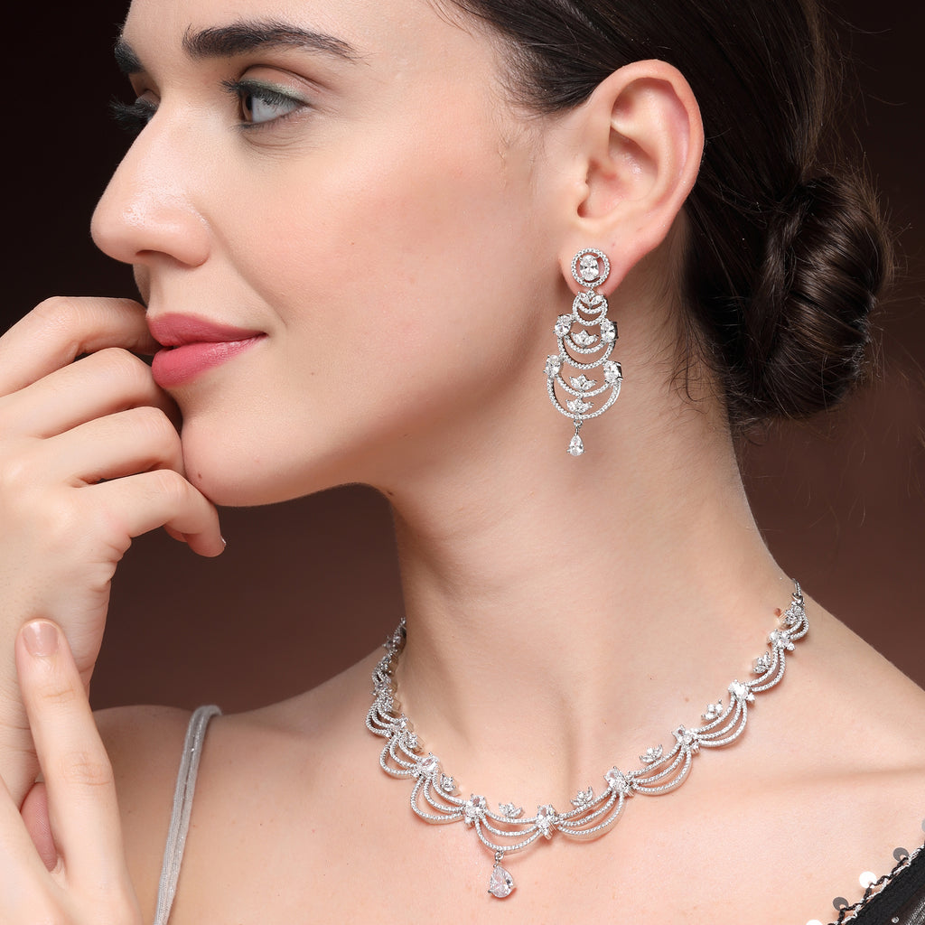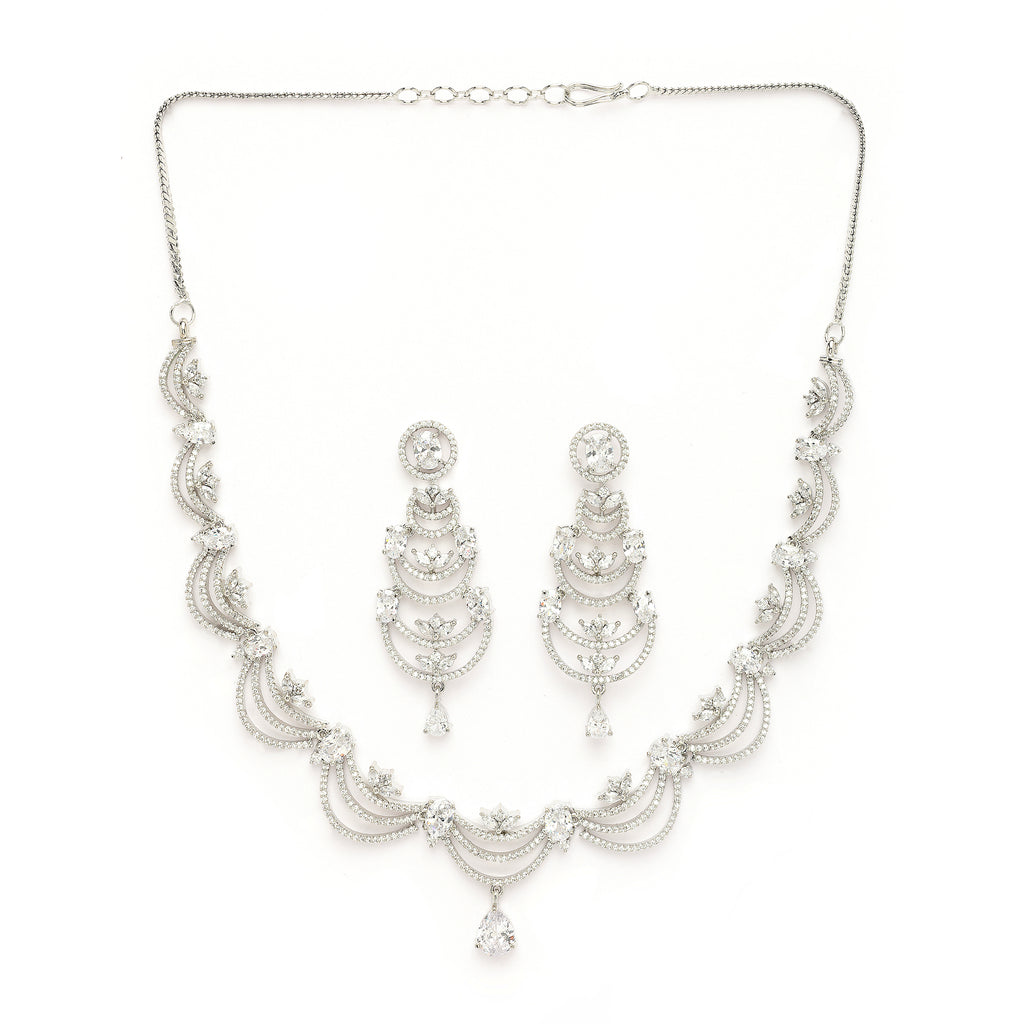 Elegant Design: This rhodium-plated necklace set boasts a sophisticated contemporary design, exuding timeless elegance.