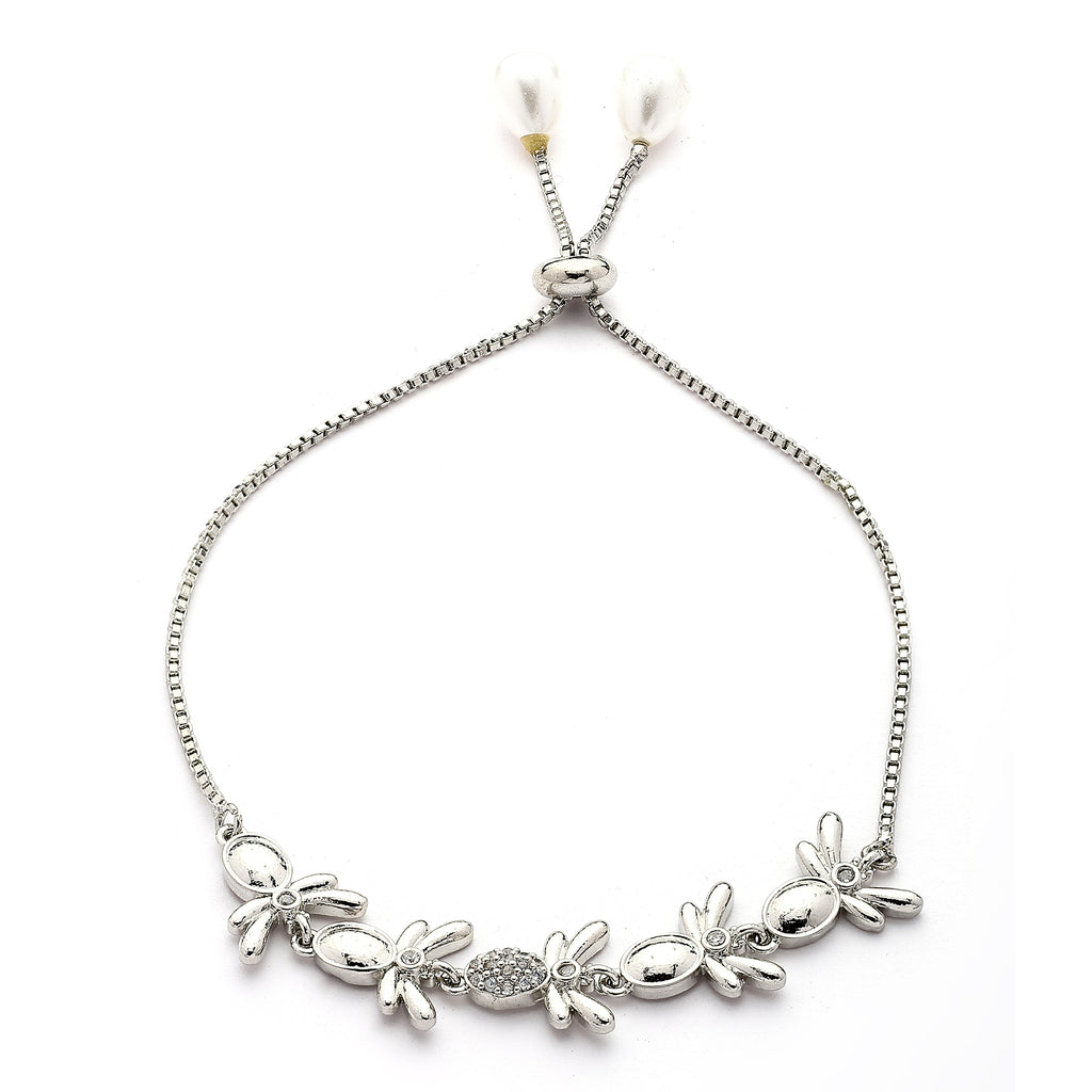 Elegant Design: This rhodium-plated wraparound bracelet showcases sparkling white Cubic Zirconia studded, adding a touch of sophistication to your look.