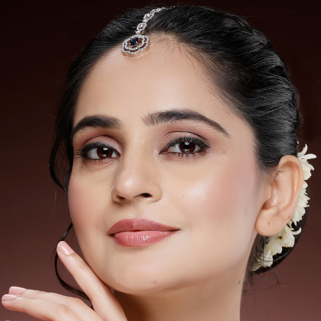 • Elegant Design: This rhodium-plated Maang Tikka features a beautiful floral-inspired design, adorned with sparkling stones for a timeless and sophisticated look.