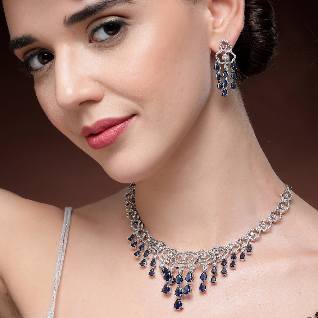Elegant Design: This rhodium-plated necklace set boasts a sophisticated contemporary design, exuding timeless elegance.