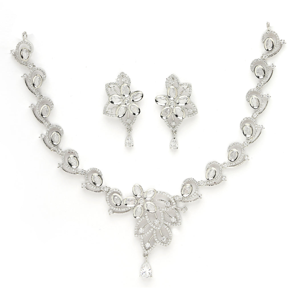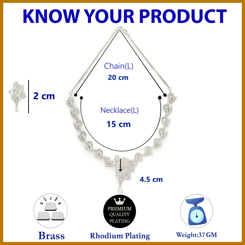 Elegant Floral Design: This exquisite rhodium-plated necklace set is a testament to timeless elegance and contemporary design. Crafted with precision.