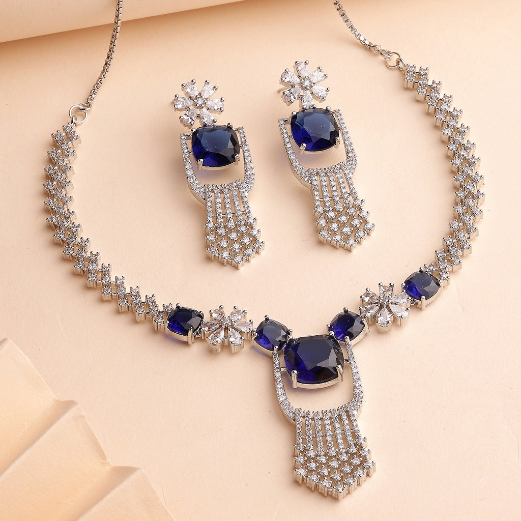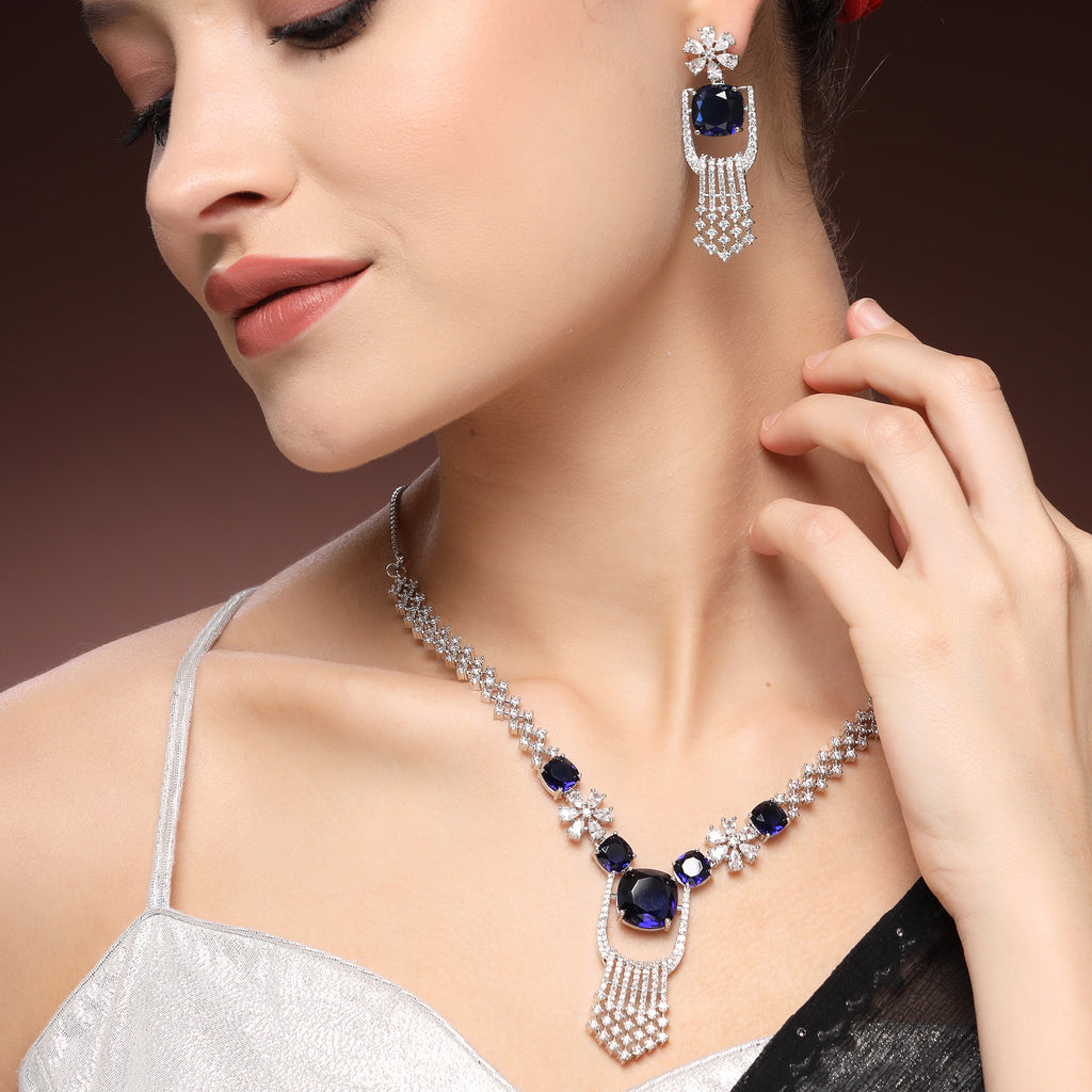 Elegant Design: This rhodium-plated necklace set boasts a sophisticated contemporary design, exuding timeless elegance.