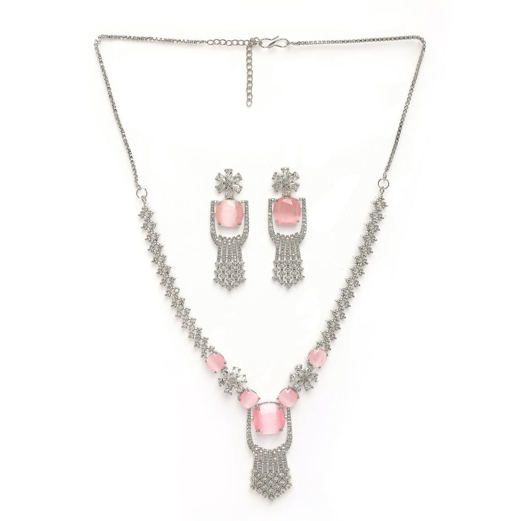 Elegant Design: This rhodium-plated necklace set boasts a sophisticated contemporary design, exuding timeless elegance.