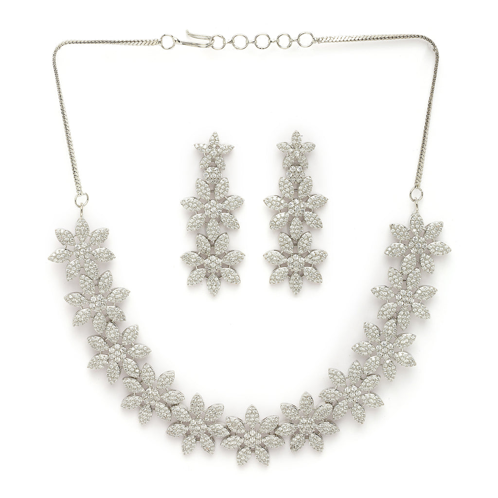 Elegant Design: This rhodium-plated necklace set boasts a sophisticated contemporary design, exuding timeless elegance.