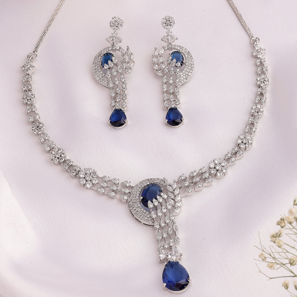 Elegant Design: This rhodium-plated necklace set boasts a sophisticated contemporary design, exuding timeless elegance.