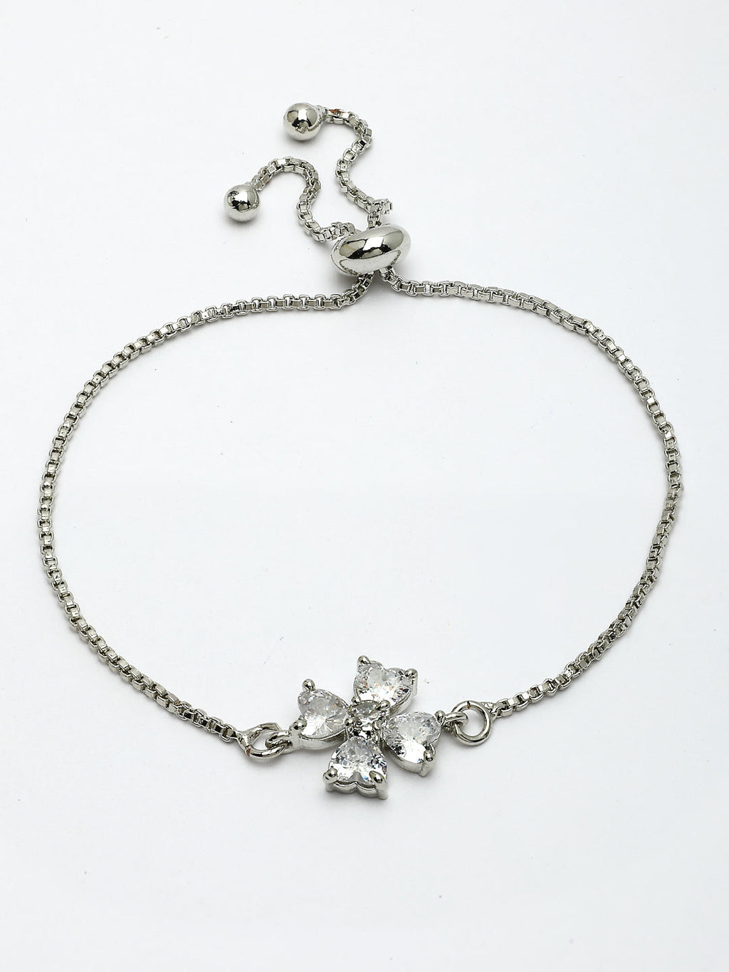 Floral Elegance: This rhodium-plated wraparound bracelet features a stunning floral design, adding charm and sophistication to your look.