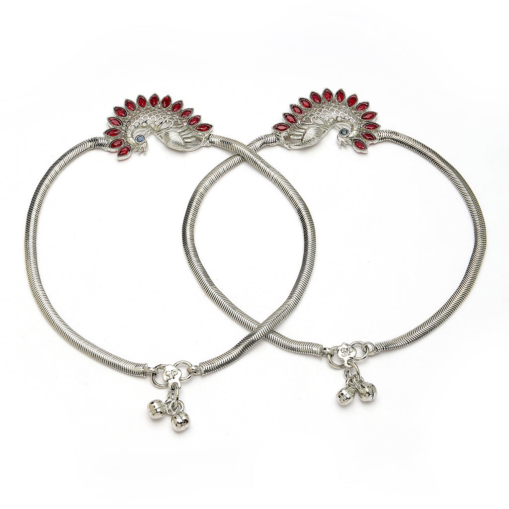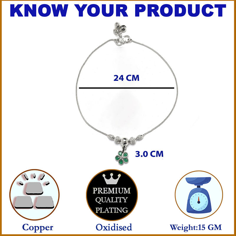 Rhodium Plated Silver Toned Flower Shaped Emerald Green Cubic Zirconia studded Charm Anklets