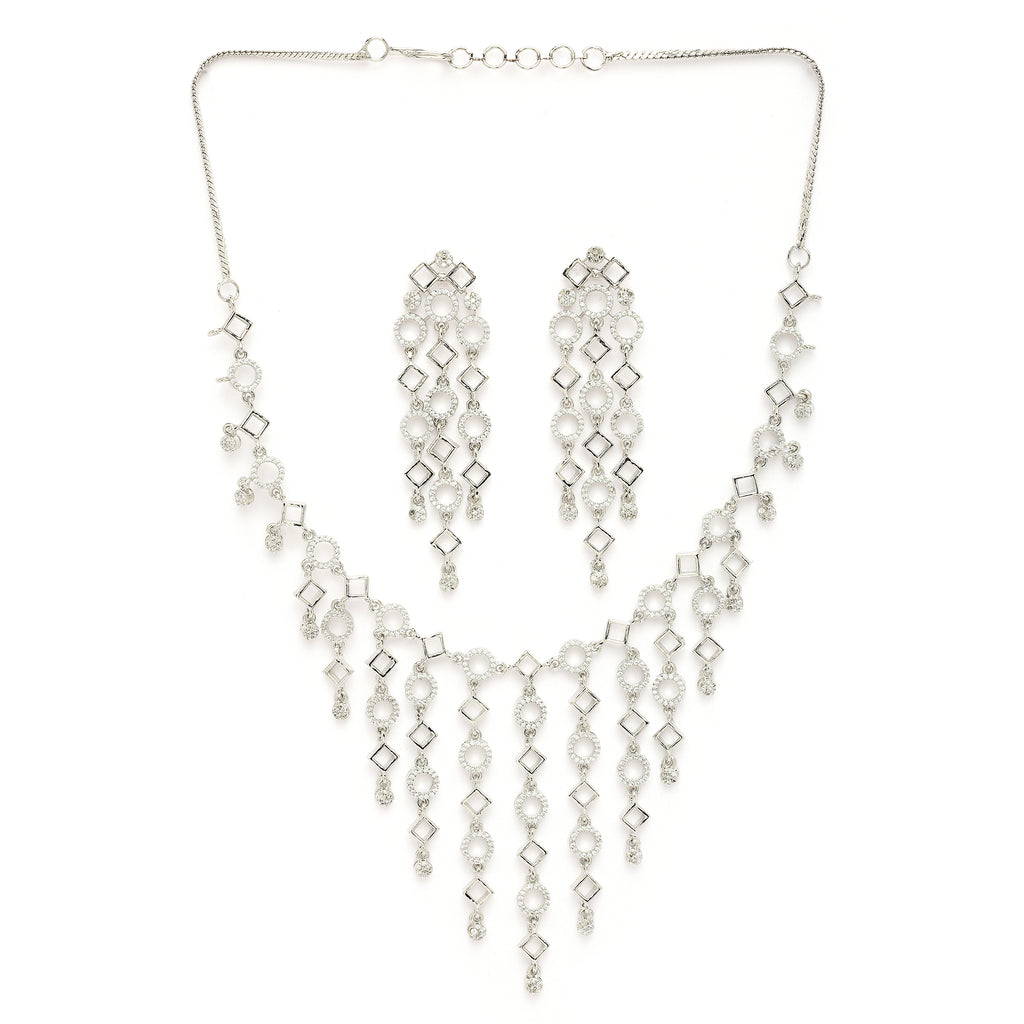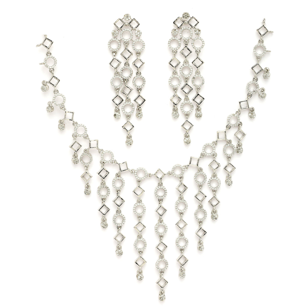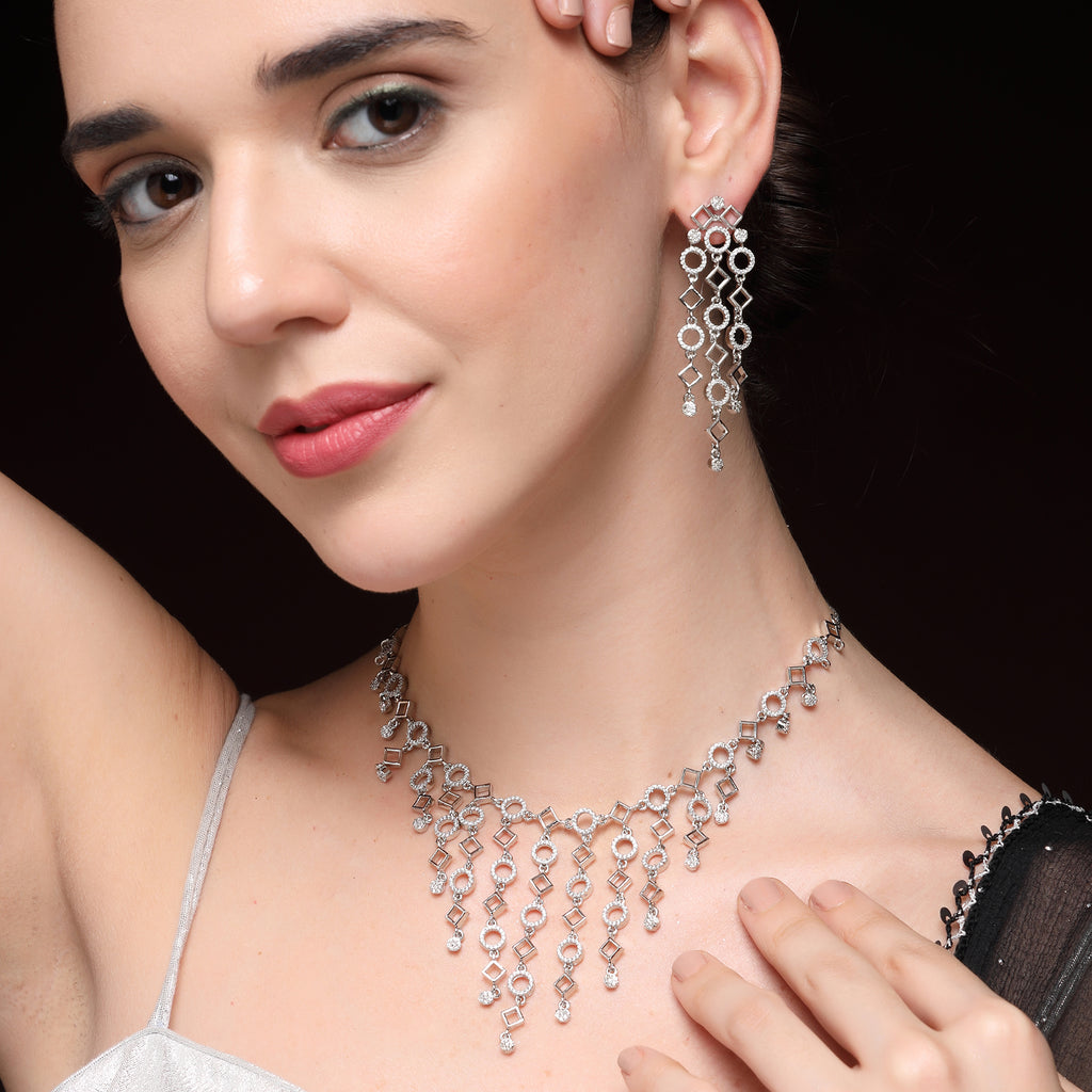 Elegant Design: This rhodium-plated necklace set boasts a sophisticated contemporary design, exuding timeless elegance.