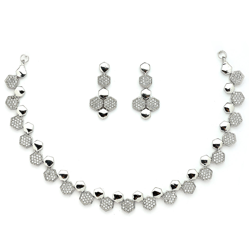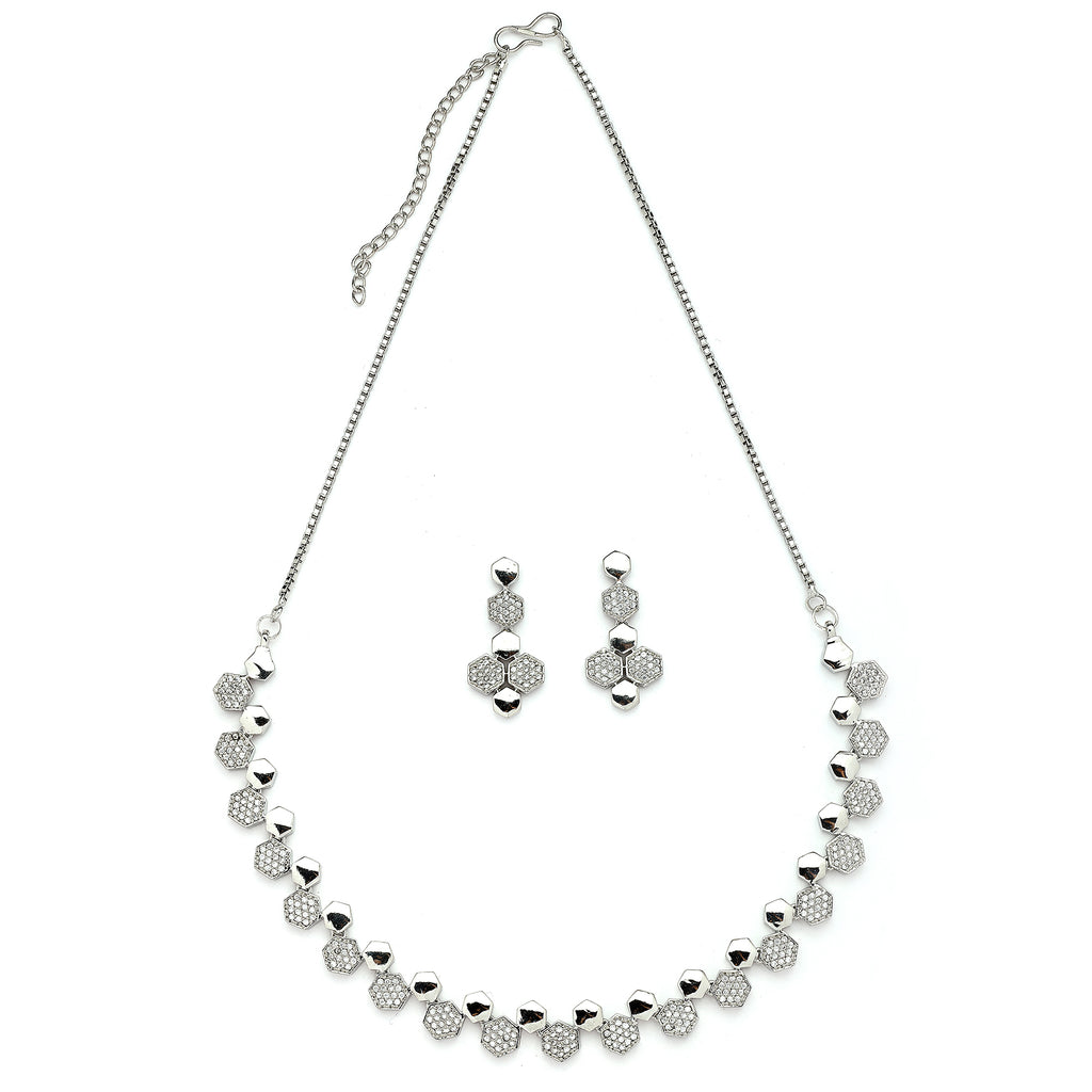 Elegant Design: This rhodium-plated necklace set boasts a sophisticated contemporary design, exuding timeless elegance.