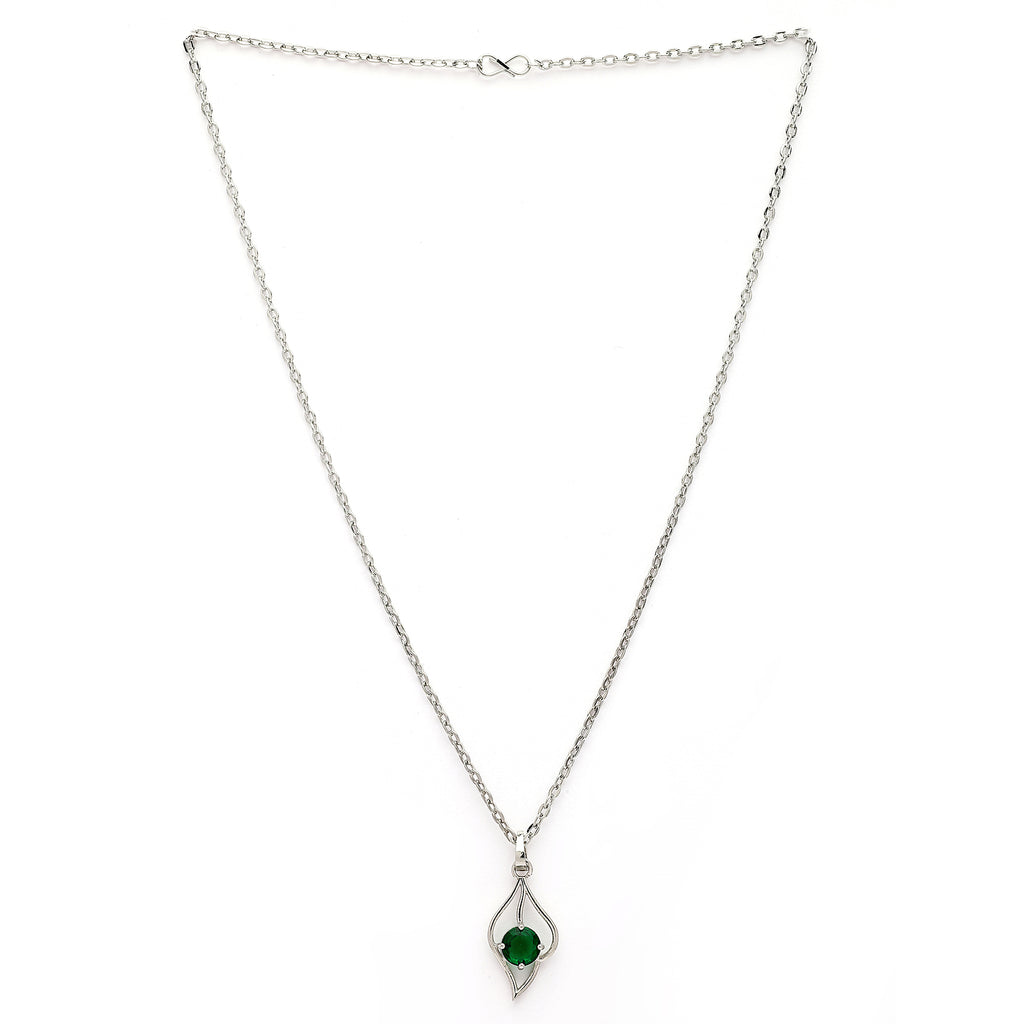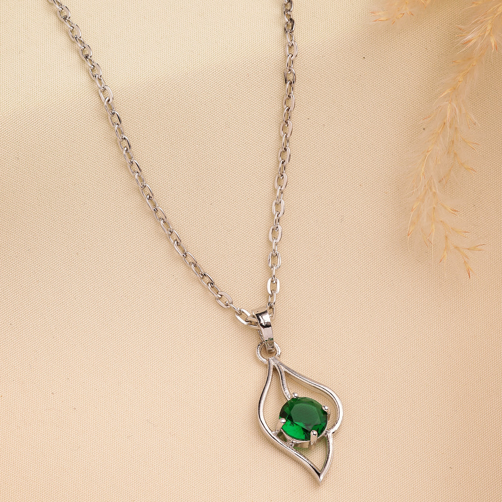 Elegant Design: This rhodium-plated silver toned American Diamond studded Leaf shaped Pendant with chain boasts a sophisticated Trendy design, exuding timeless elegance.