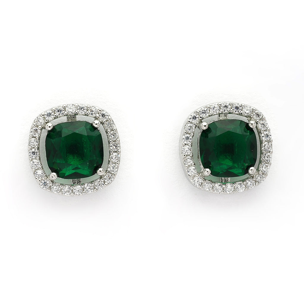 Elegant Design: This rhodium-plated silver toned American Diamond studded square shaped Pendant set with a pair of matching earrings boasts a sophisticated Trendy design, exuding timeless elegance.