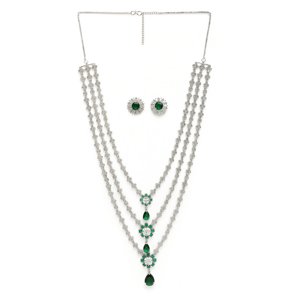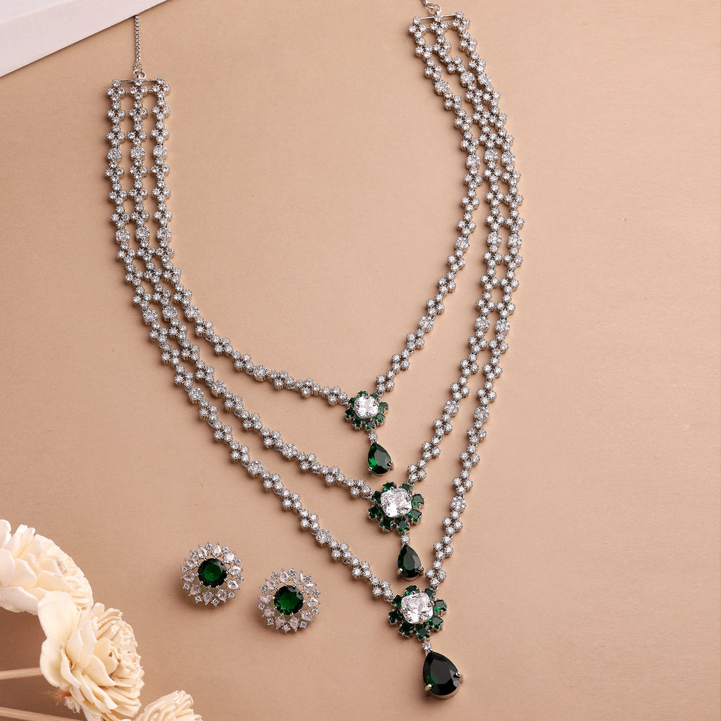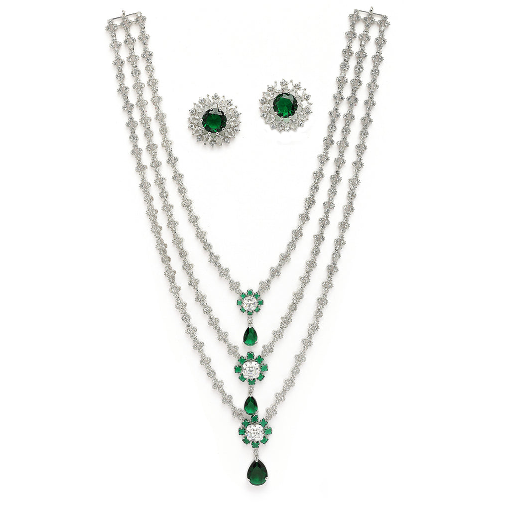 Elegant Design: This rhodium-plated necklace set boasts a sophisticated contemporary design, exuding timeless elegance.