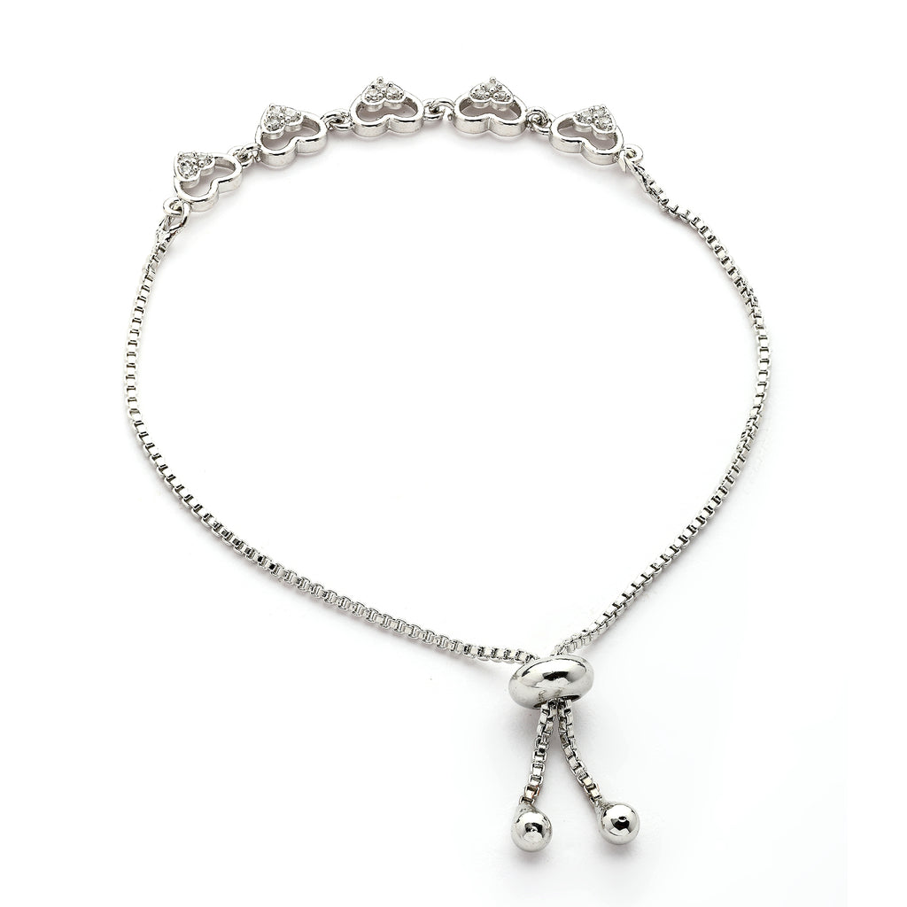Elegant Design: This rhodium-plated wraparound bracelet showcases sparkling white Cubic Zirconia in a Heart shape, adding a touch of sophistication to your look.