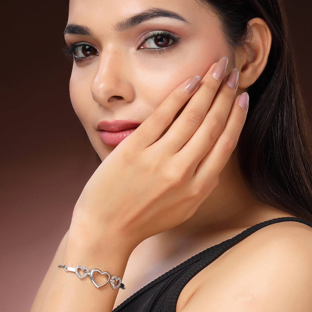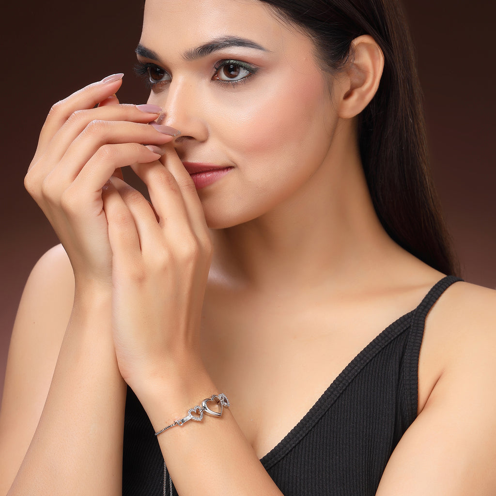 Elegant Design: This rhodium-plated wraparound bracelet showcases sparkling white Cubic Zirconia in a Heart shape, adding a touch of sophistication to your look.