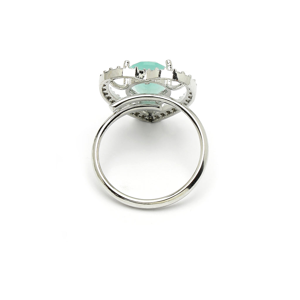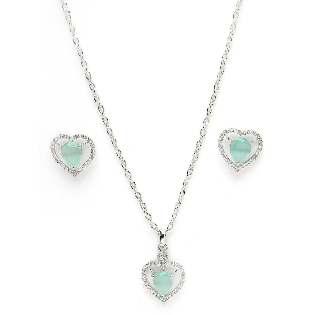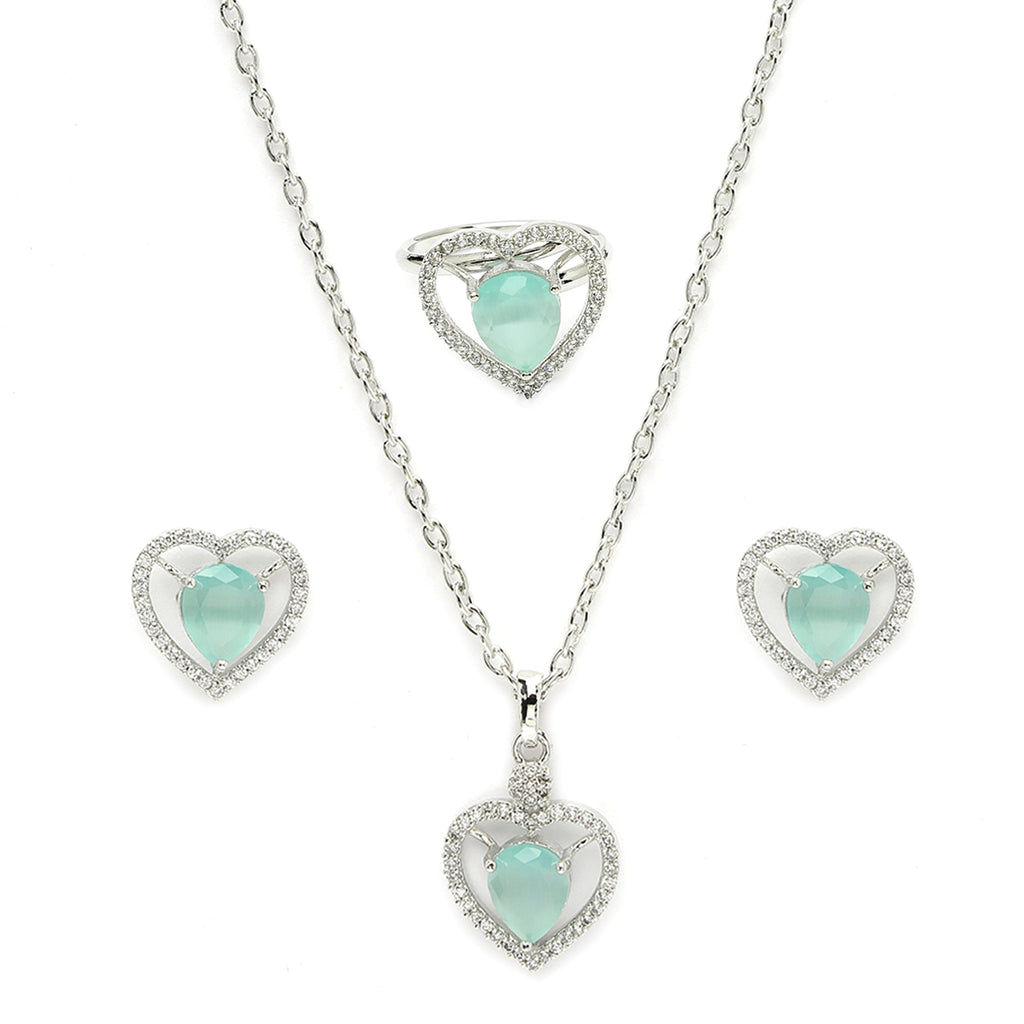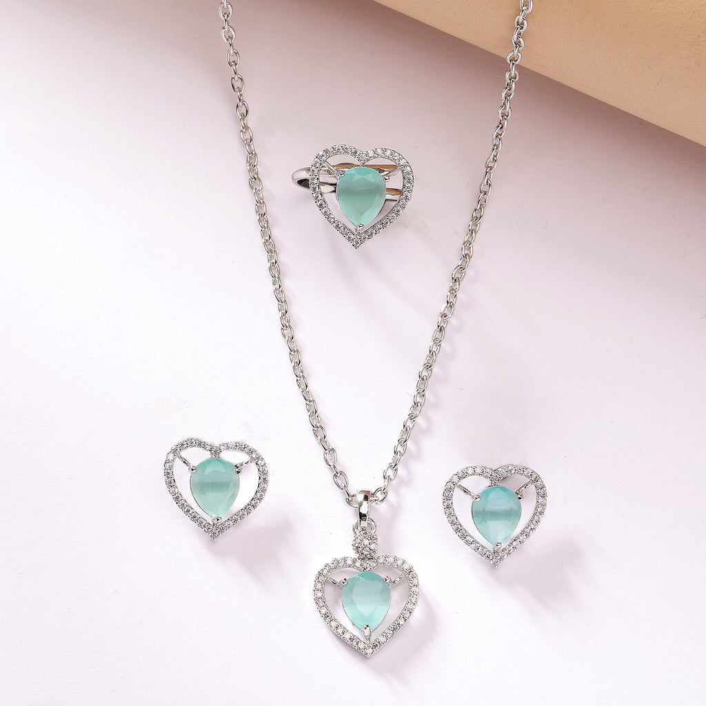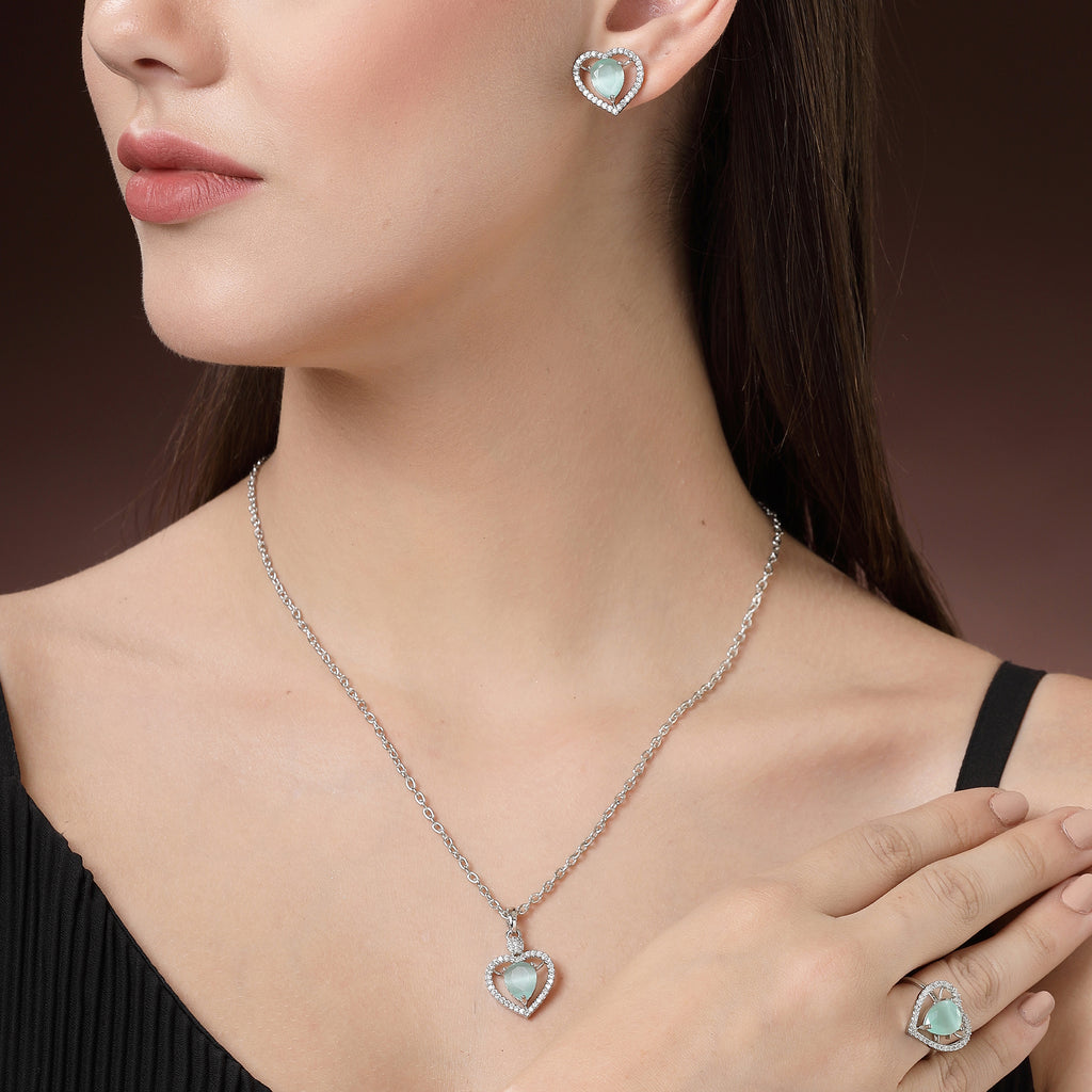 Heart Shaped Design : This rhodium-plated with Sea Blue gemstone at its core for a harmonized and stylish look. Surrounding the gemstone is a halo of shimmering white stones, adding a touch of brilliance and sophistication