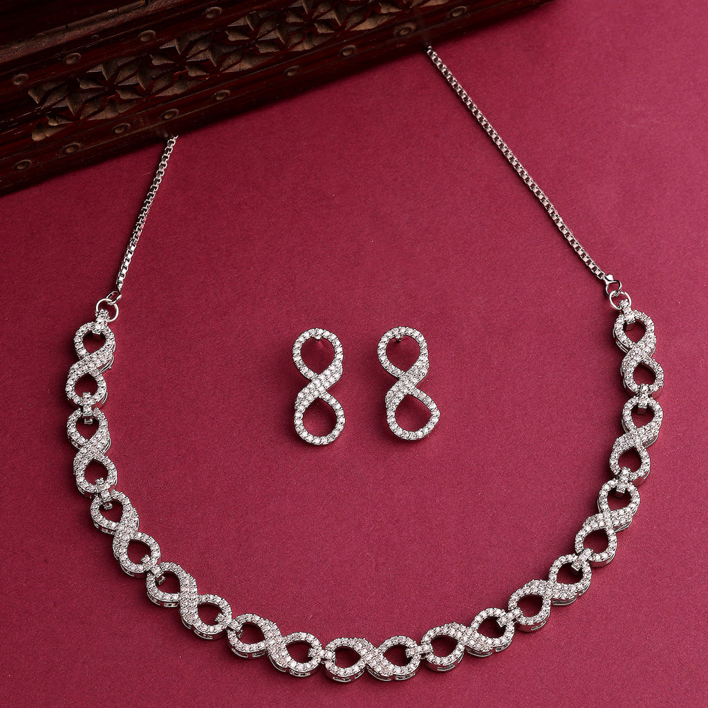 Elegant Royal Design: This rhodium-plated necklace set boasts a sophisticated royal design, exuding timeless elegance.