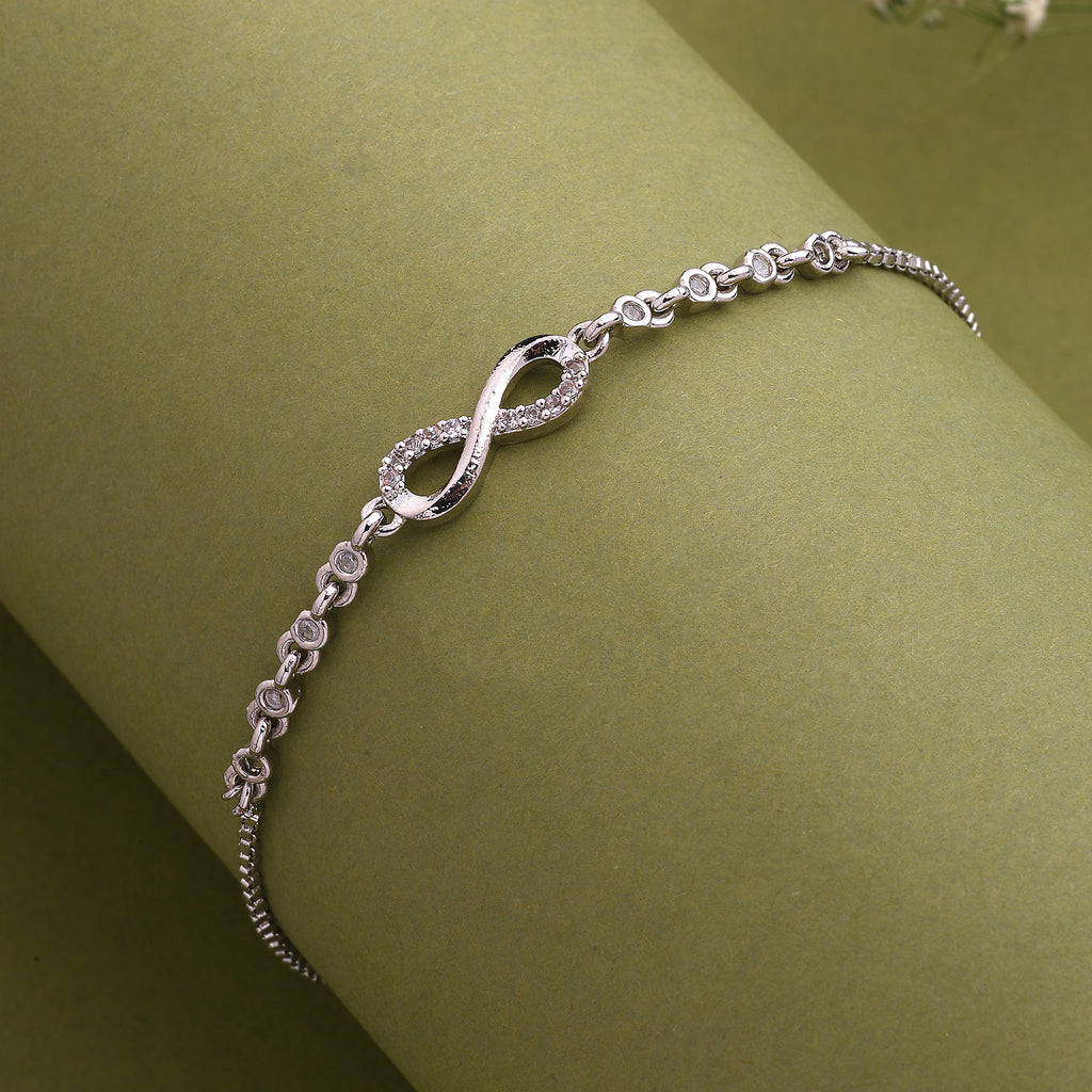 Elegant Design: This rhodium-plated wraparound bracelet showcases sparkling white Cubic Zirconia in a infinity shape, adding a touch of sophistication to your look.