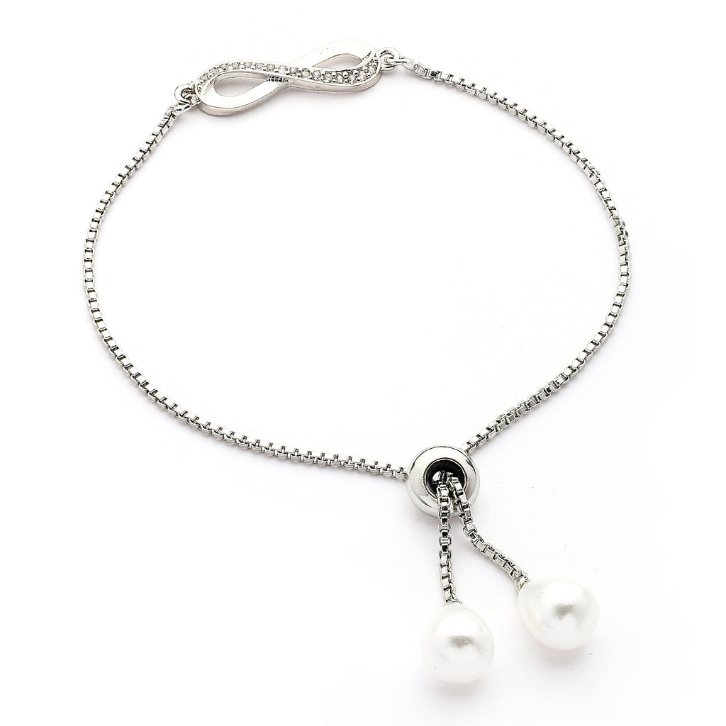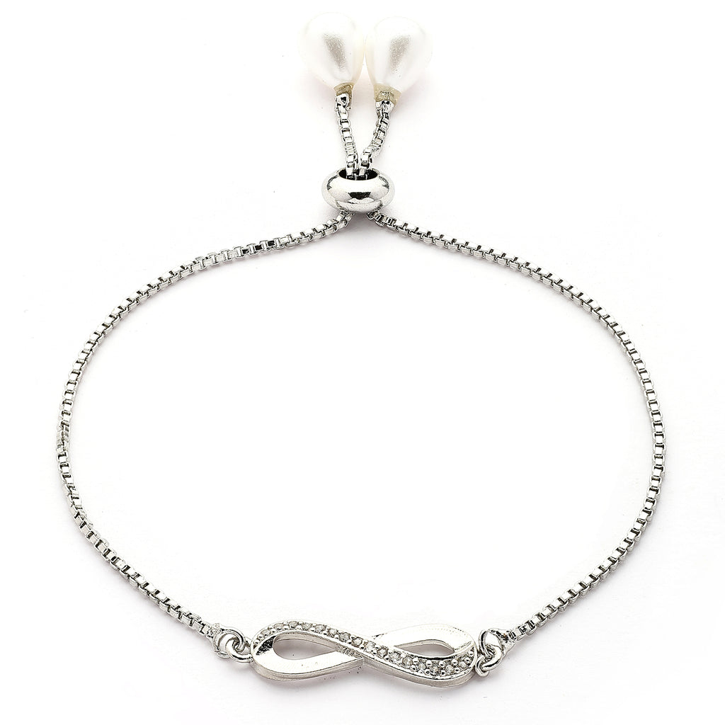 Elegant Design: This rhodium-plated wraparound bracelet showcases sparkling white Cubic Zirconia in a infinity shape, adding a touch of sophistication to your look.