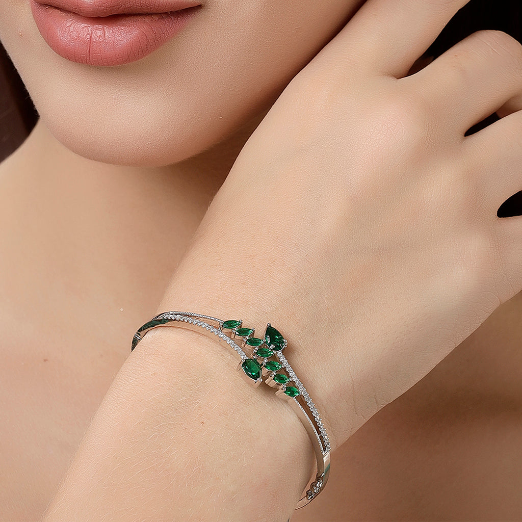 Elegant Leaf Design: This bangle bracelet features a sleek & beautiful nature design with American diamonds, creating a sophisticated and eye-catching look.