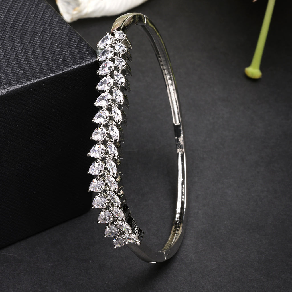 Elegant Leaf Shaped Design: This stunning rhodium-plated bracelet features an intricate leaf-shaped design, adding a natural, graceful touch to your style.