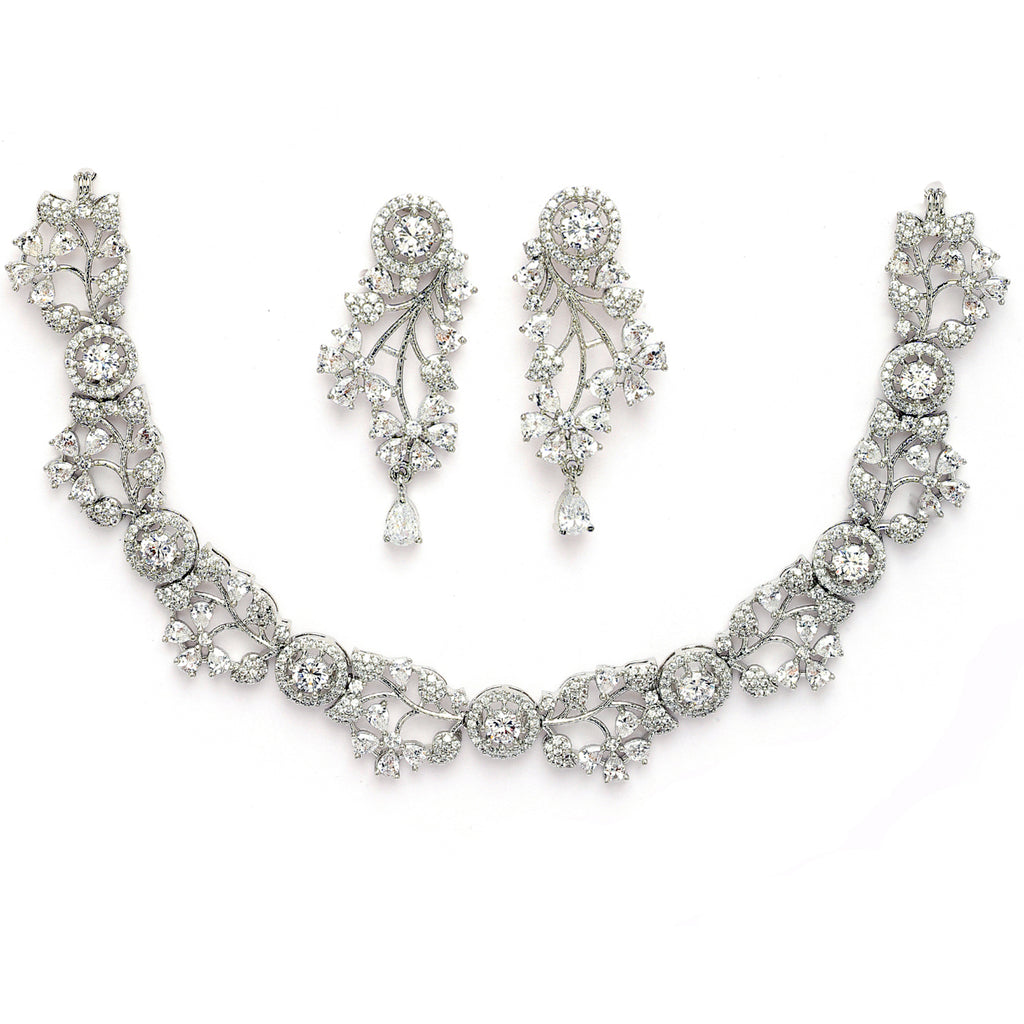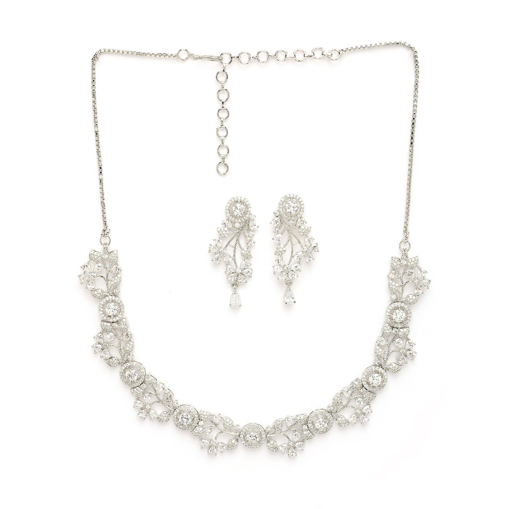 Elegant Design: This rhodium-plated necklace set boasts a sophisticated contemporary design, exuding timeless elegance.