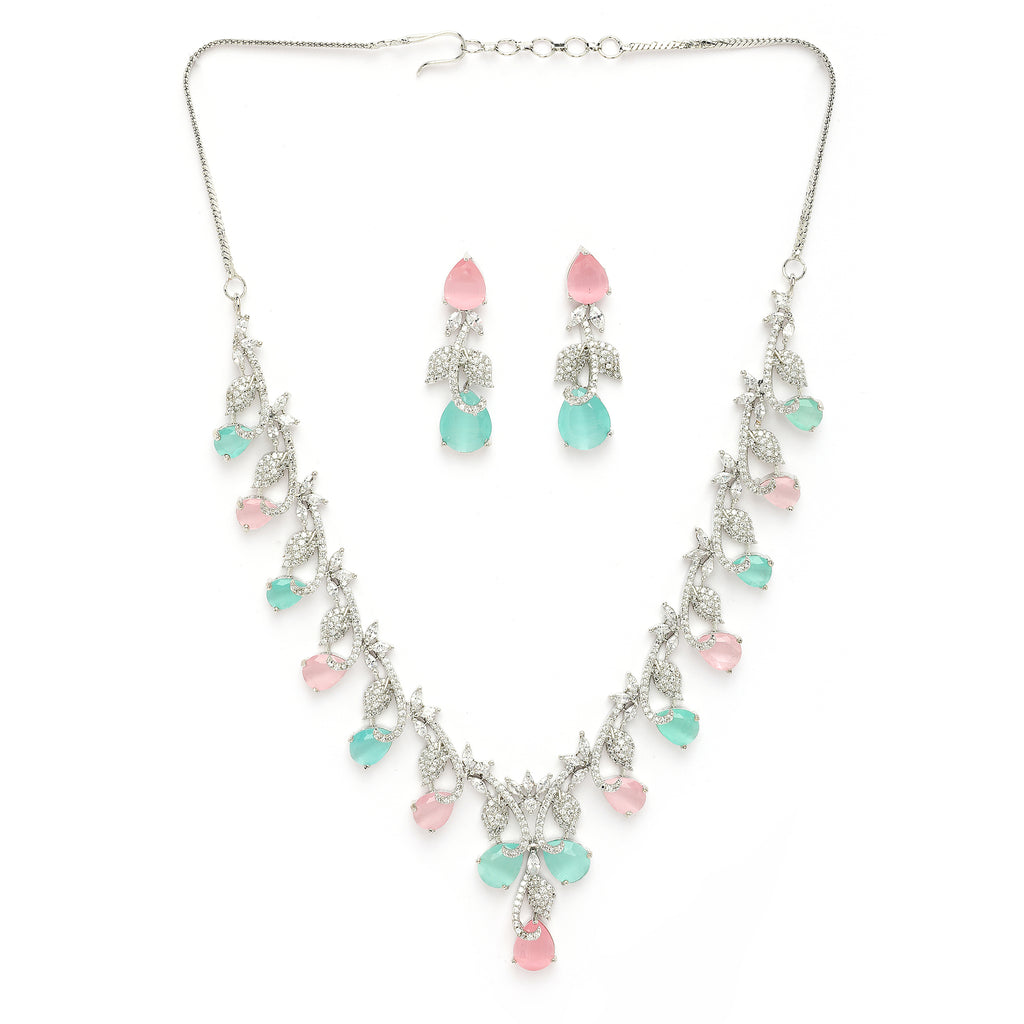 Elegant Design: This rhodium-plated necklace set boasts a sophisticated contemporary design, exuding timeless elegance.
