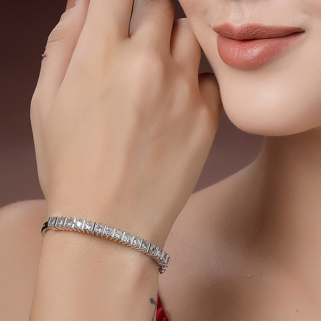 Elegant Minimal Design: This bangle bracelet features a sleek design with American diamonds, creating a sophisticated and eye-catching look.