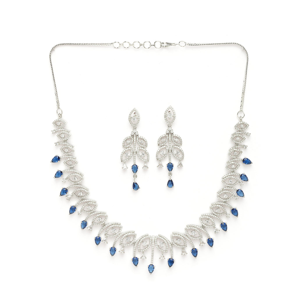 Elegant Design: This rhodium-plated necklace set boasts a sophisticated contemporary design, exuding timeless elegance.