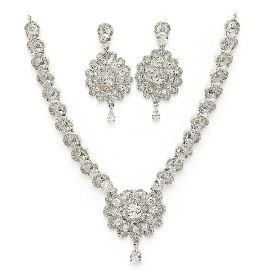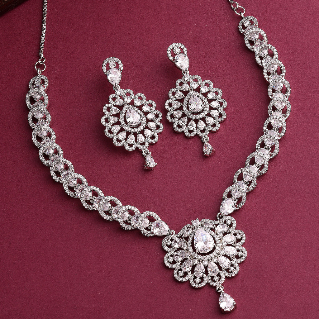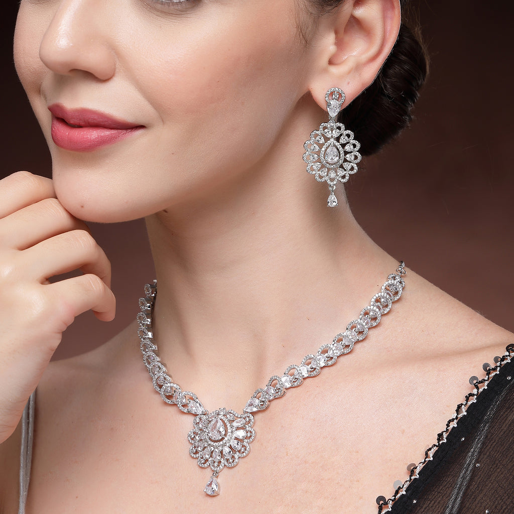 Elegant Design: This rhodium-plated necklace set boasts a sophisticated contemporary design, exuding timeless elegance.