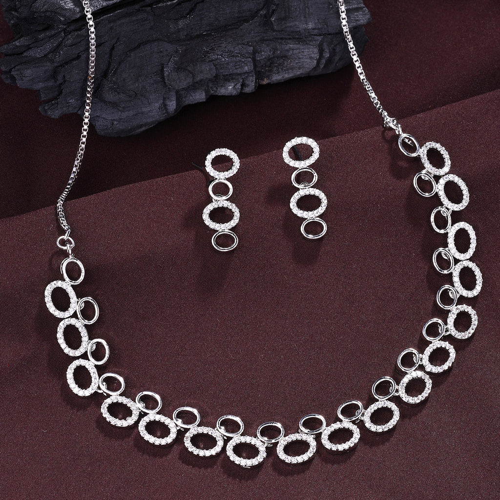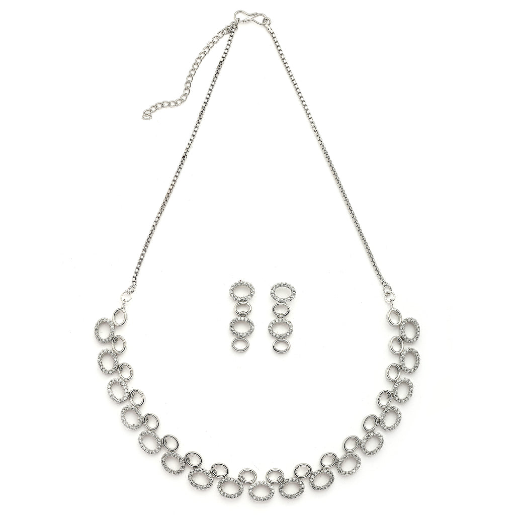 Elegant Design: This rhodium-plated necklace set boasts a sophisticated contemporary design, exuding timeless elegance.