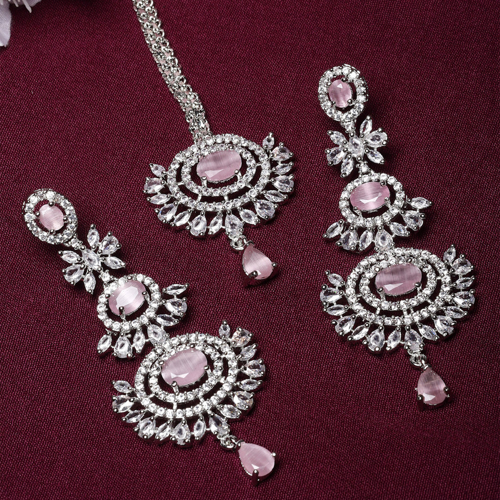 Elegant Design: ThisRhodium plated set features intricate detailing is adorned with shimmering stones, delicate pearl accents.