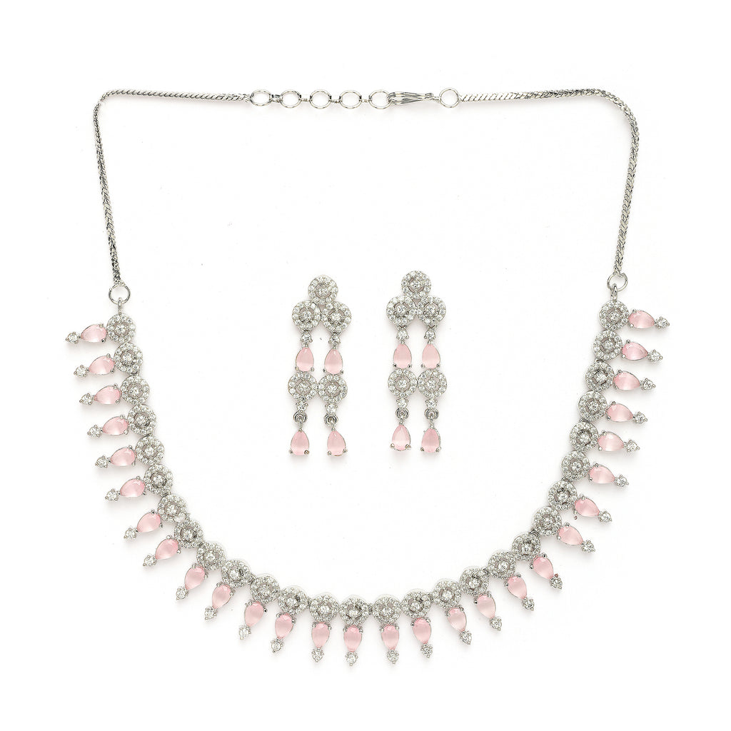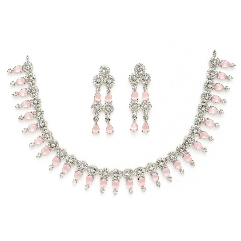 Elegant Design: This rhodium-plated necklace set boasts a sophisticated contemporary design, exuding timeless elegance.