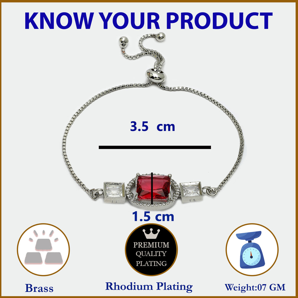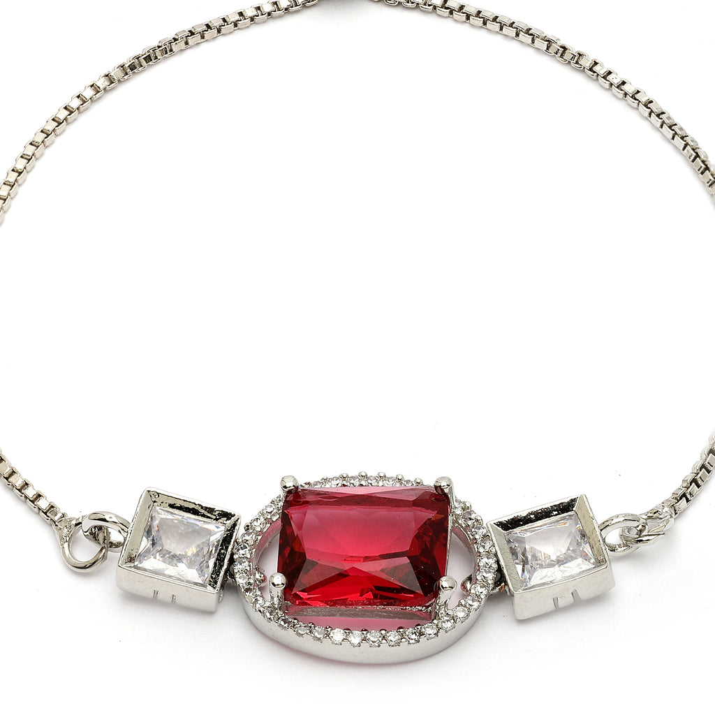 Elegant Rectangular Design: This rhodium-plated bracelet showcases rectangular ruby & white American diamonds, offering a unique and sophisticated look.
