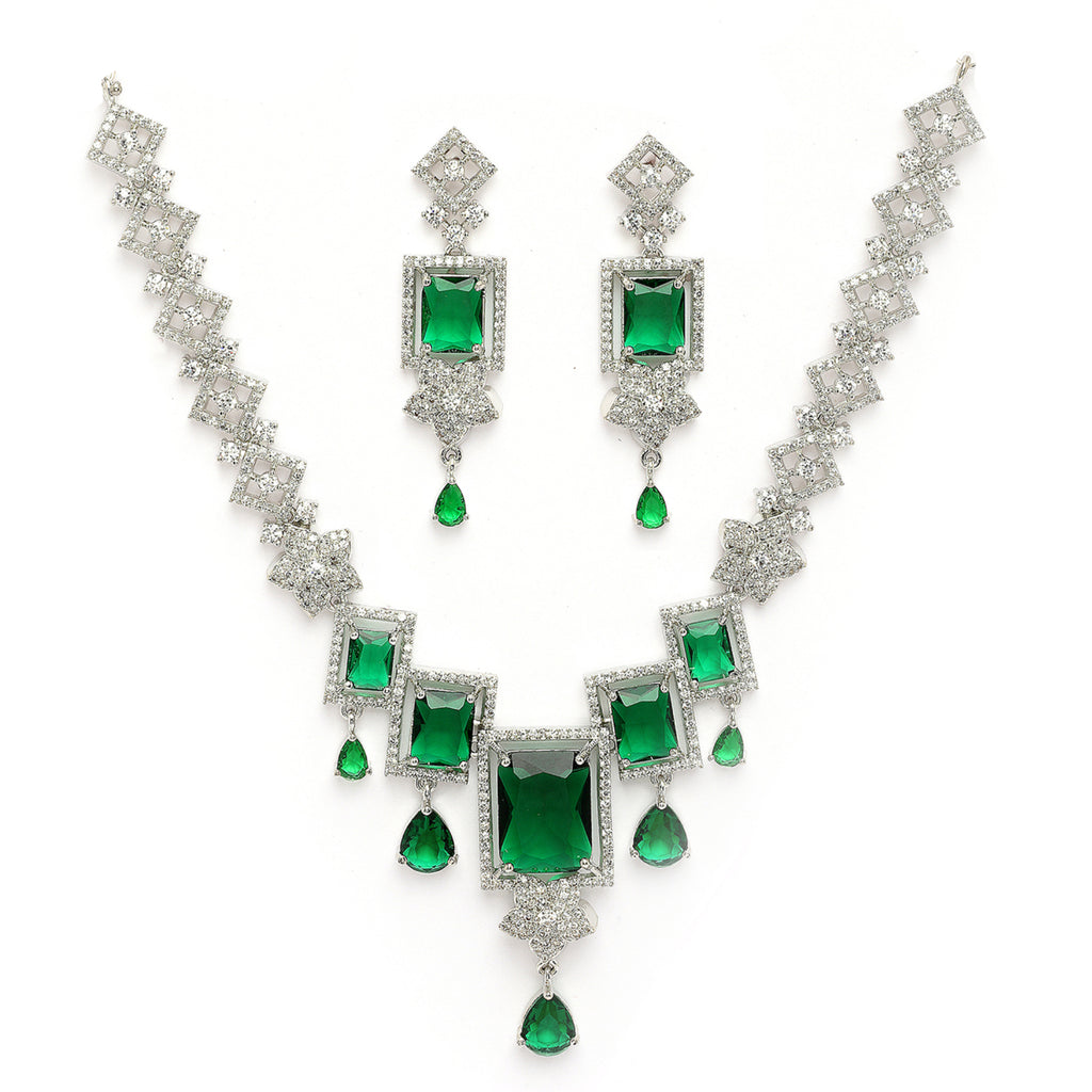 Elegant Design: This rhodium-plated necklace set boasts a sophisticated contemporary design, exuding timeless elegance.