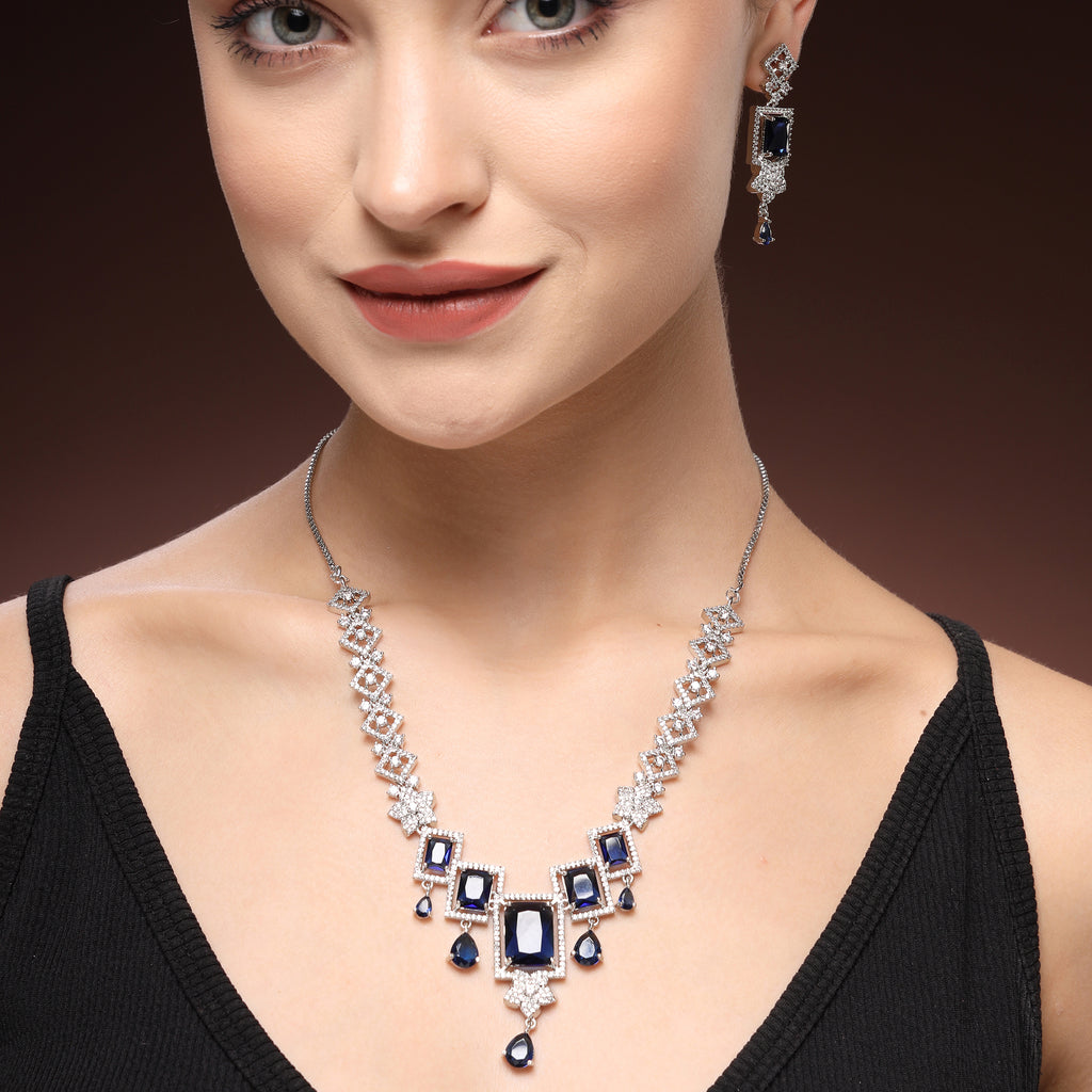 Elegant Design: This rhodium-plated necklace set boasts a sophisticated contemporary design, exuding timeless elegance.