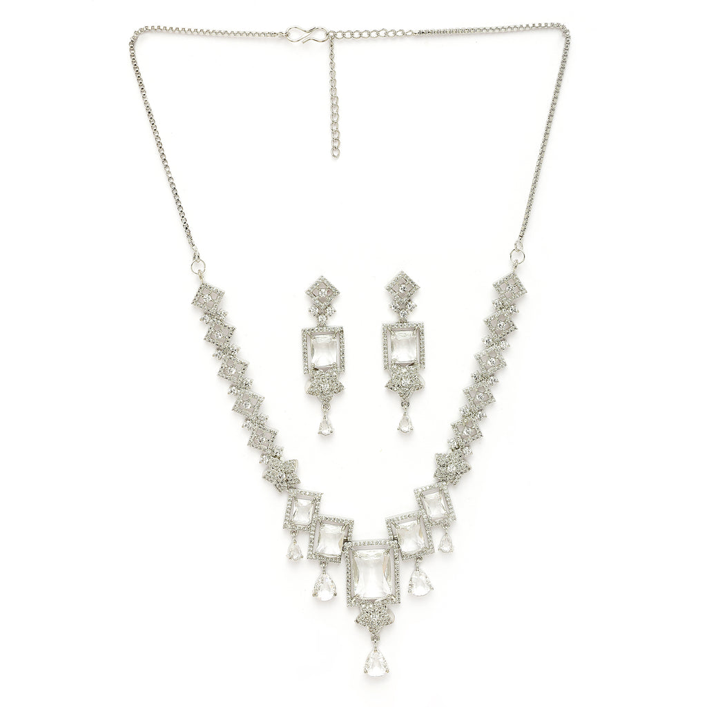Elegant Design: This rhodium-plated necklace set boasts a sophisticated contemporary design, exuding timeless elegance.