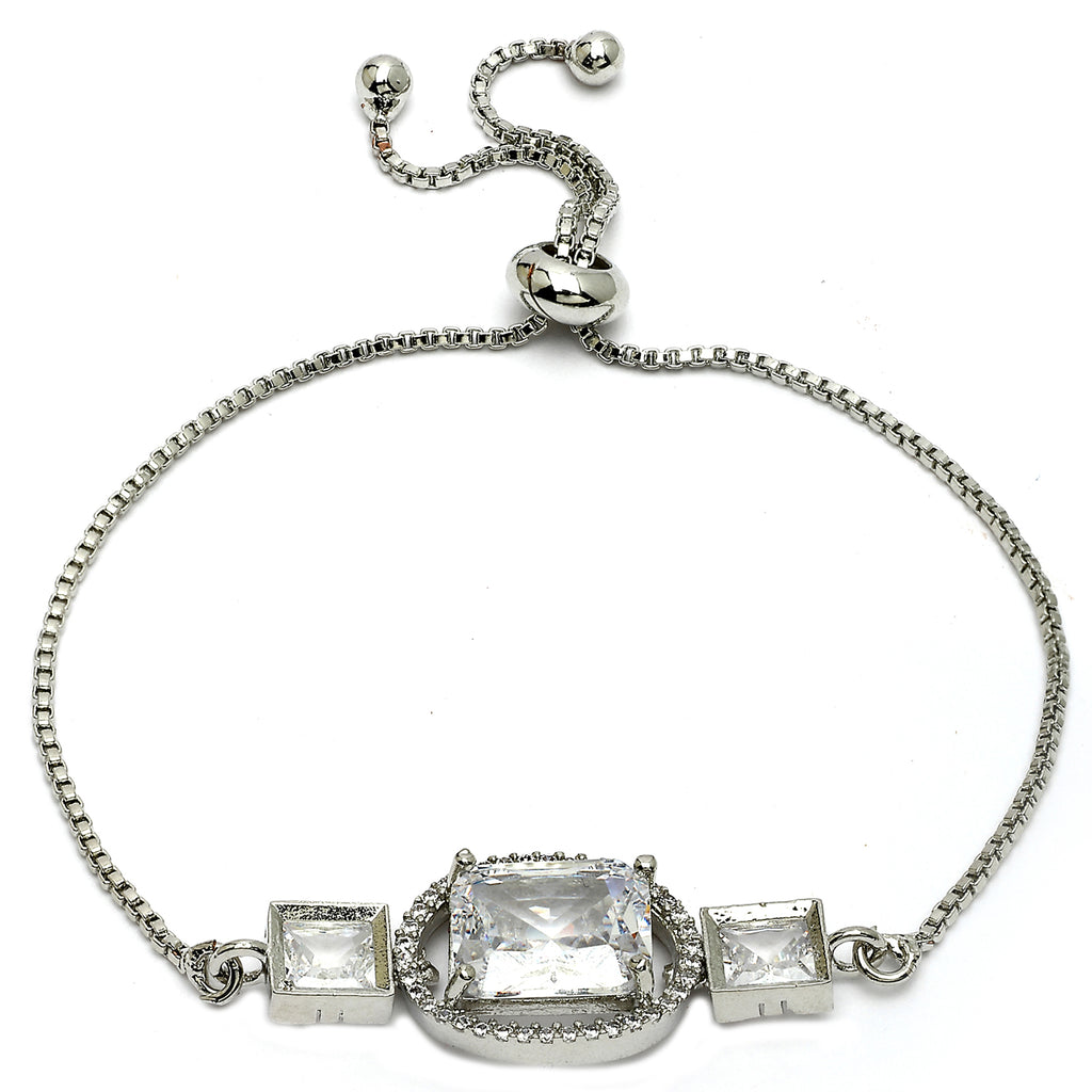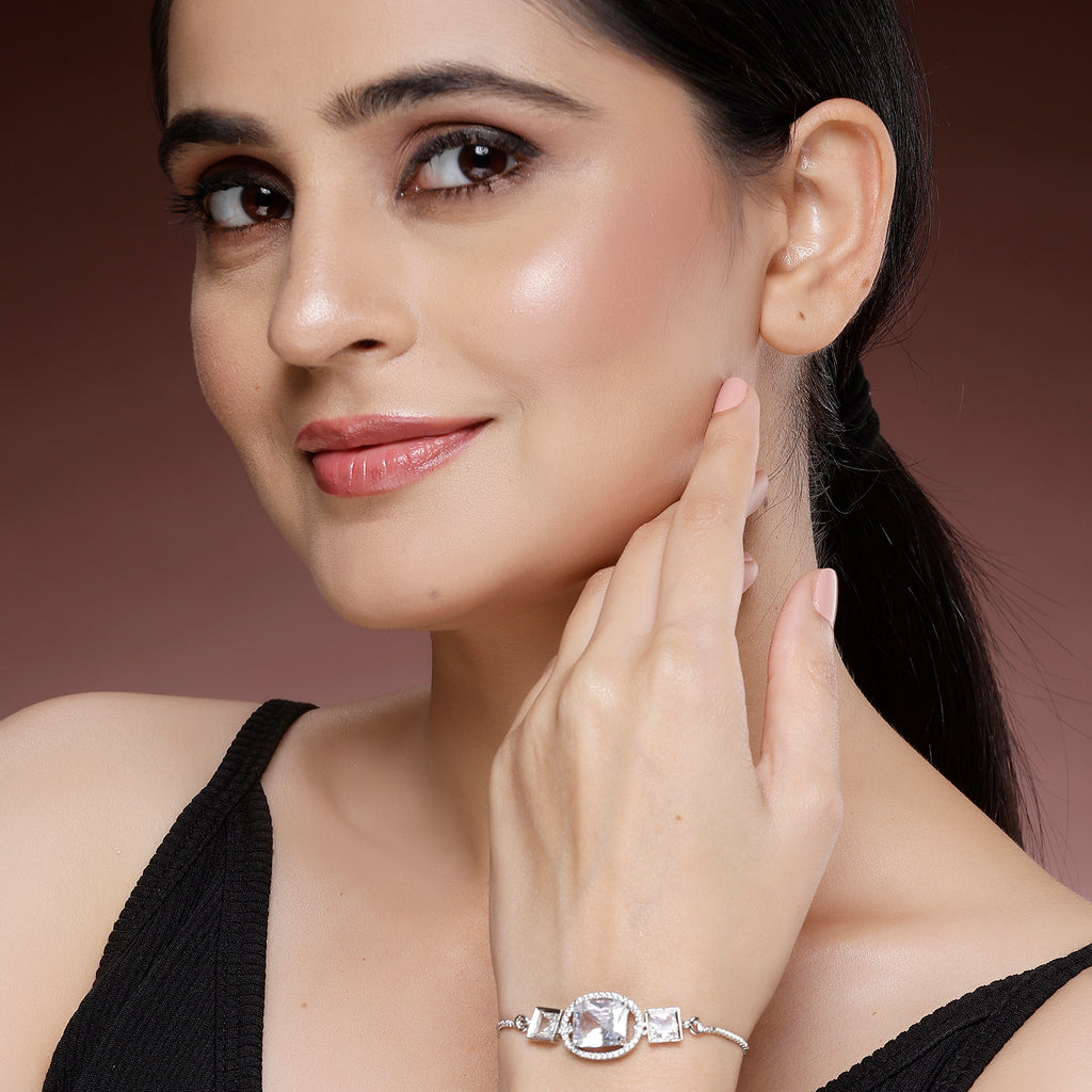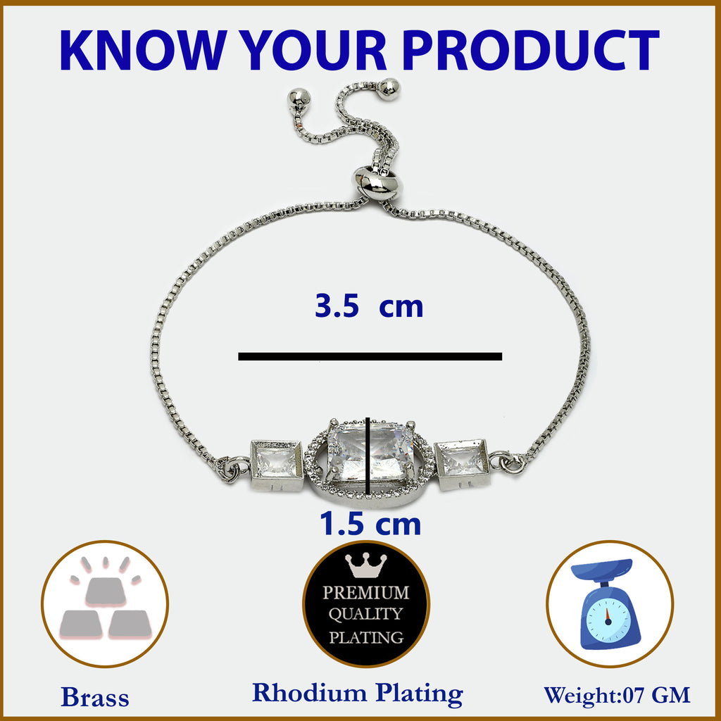 Elegant Rectangular Design: This rhodium-plated wraparound bracelet showcases rectangular white American diamonds, offering a unique and sophisticated look.