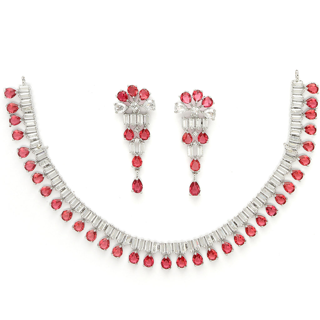 Elegant Floral Design: This exquisite rhodium-plated necklace set is a testament to timeless elegance and contemporary design. Crafted with precision.